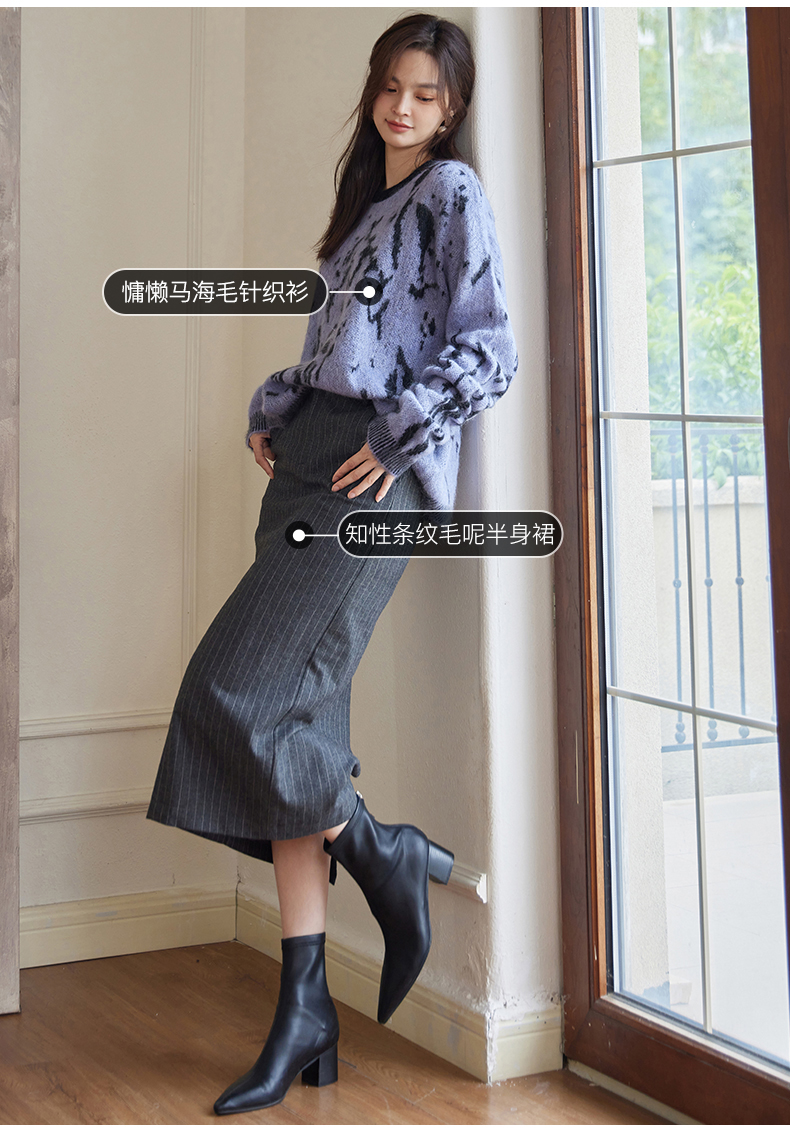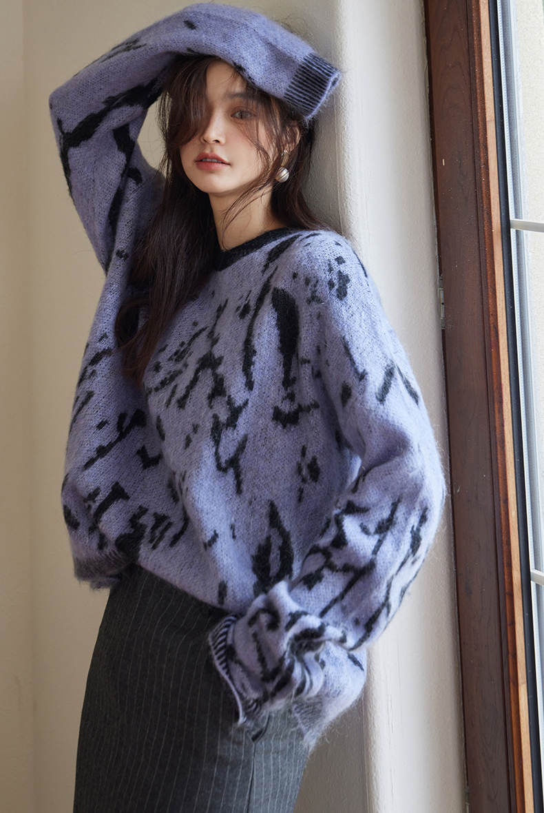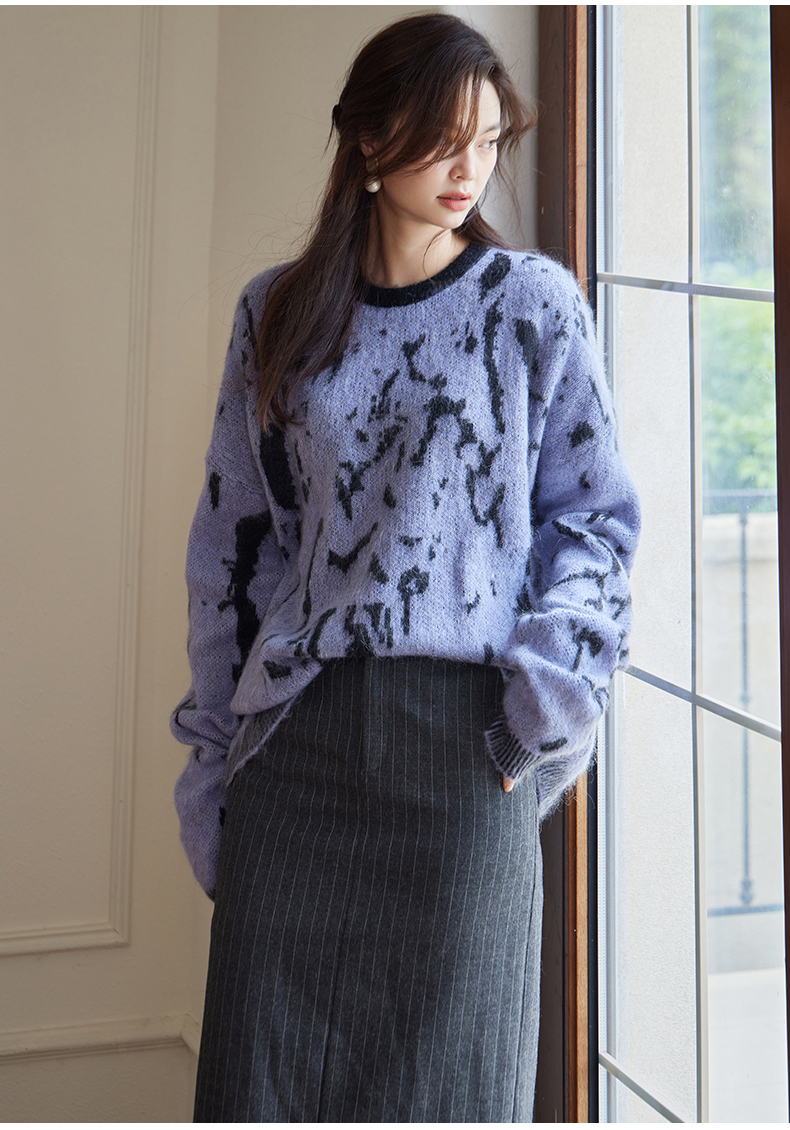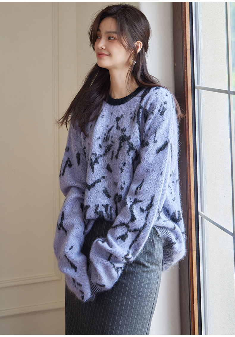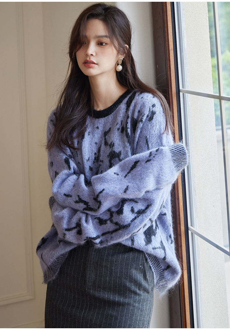 罗衣轻奢40.2%绵羊毛宽松毛衣2024冬季新款慵懒马海毛针织衫08924