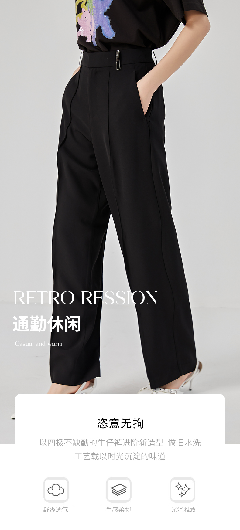 oldcolour2023夏季新款纯色高腰直筒长款西装休闲裤女O21073145