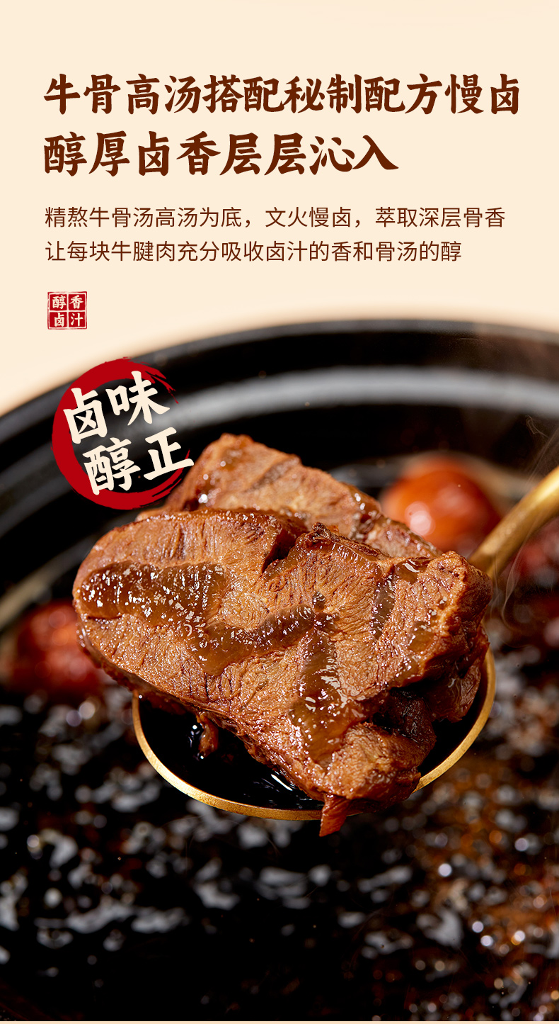 银祥的卤方,源自百年卤味世家秘方,为了这款牛腱子,工程师更做了进一步升级: