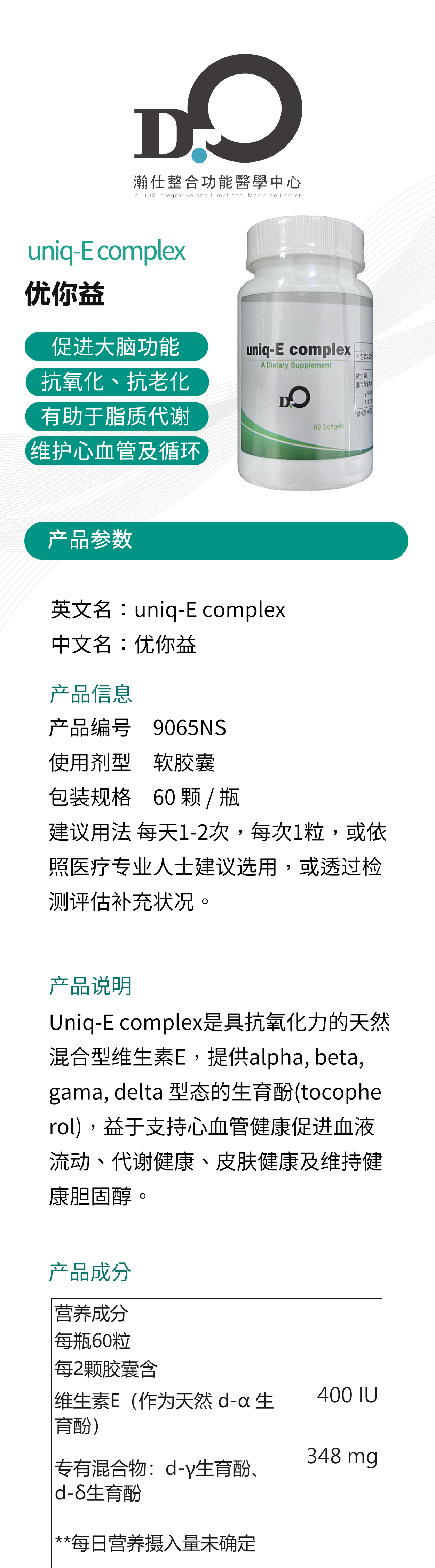 台湾瀚仕 优康E 优你益 UNIQ-E complex 维生素E#皮肤健康#抗氧化 【预售】