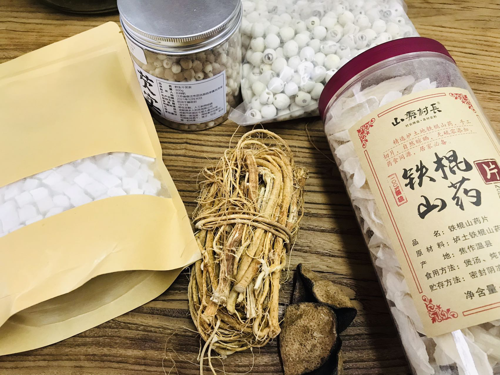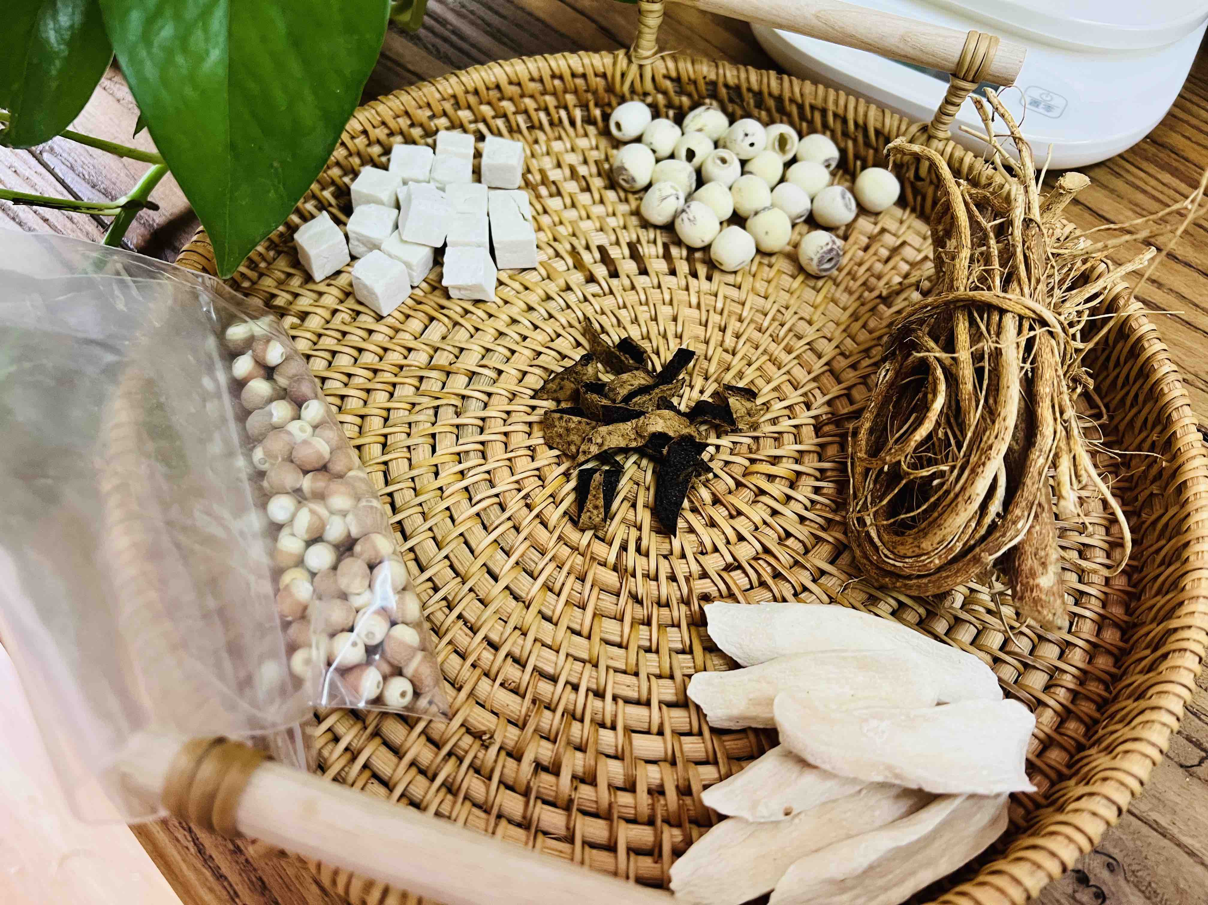 四神汤,其中"四神"是指山药、莲子、芡实、茯苓。它们就像是辅佐身体的四位神仙,在一起互相补遗,养脾胃、安神、养肤,而且性质非常平和。