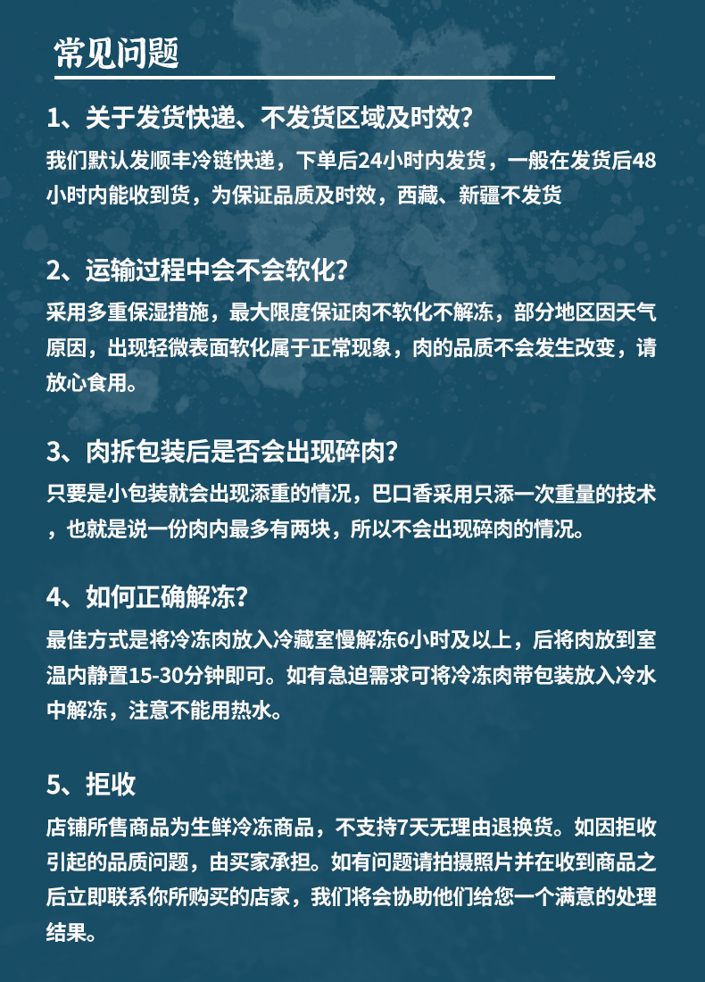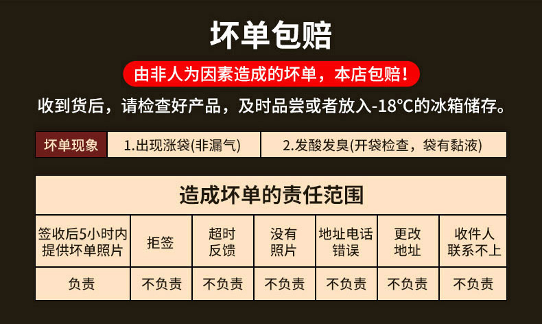 2、理赔时提供带有巴口香标签坏肉+快递号(同框照片,不接受拼涂且清晰可见)如不按照要求提供,恕不能理赔;