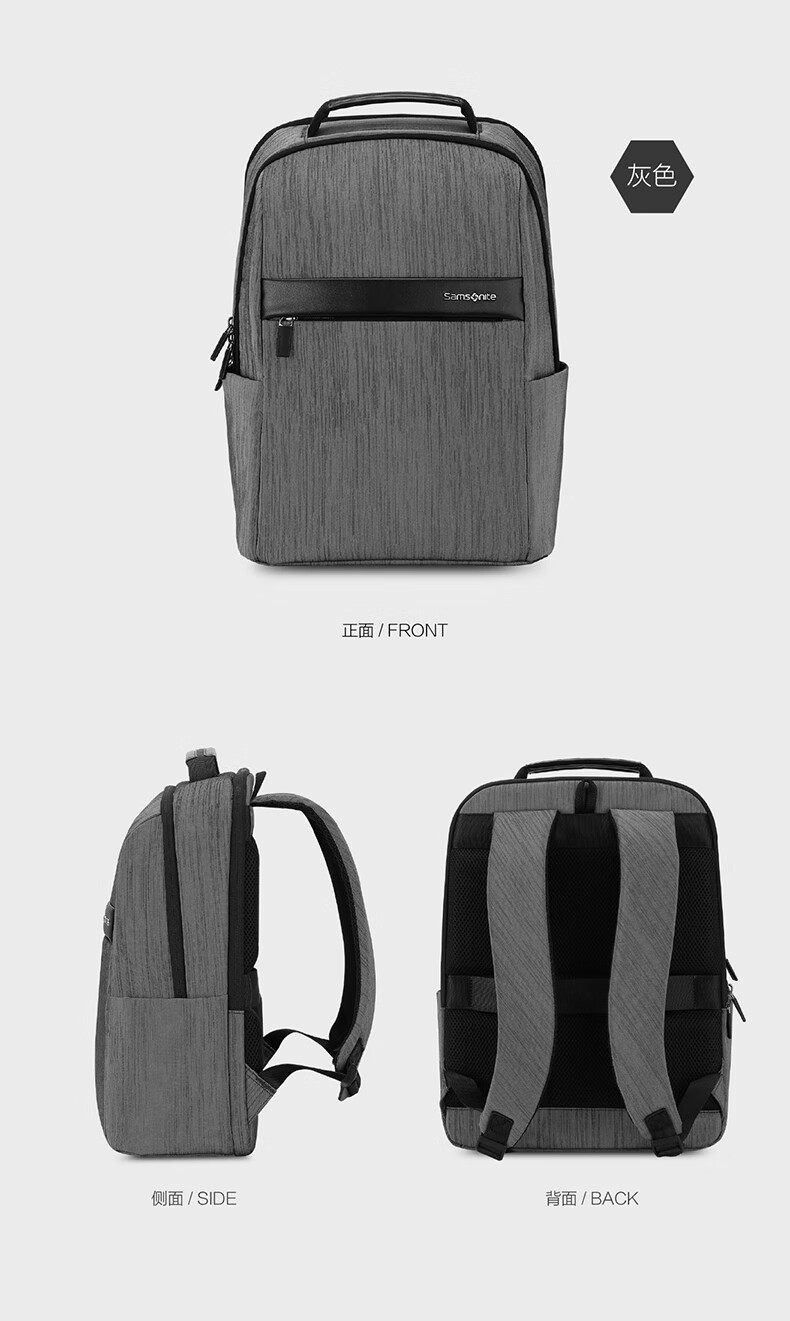 新秀丽时尚双拼 立体有型双肩包 都市简约电脑包TR1 灰色TR1*08026