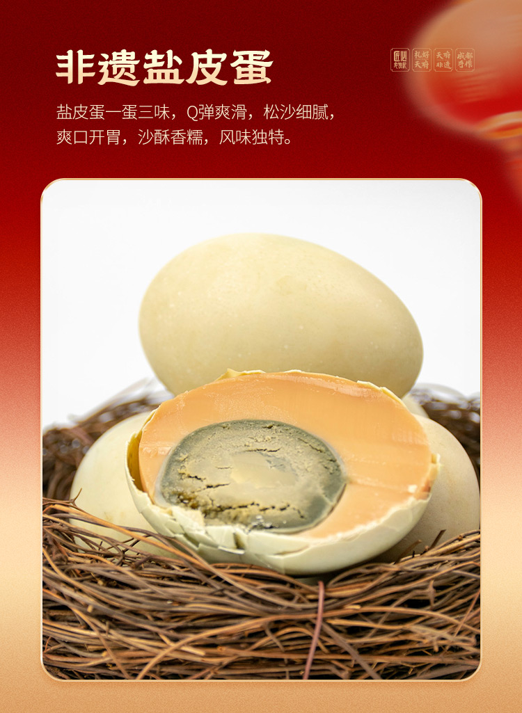 【年货礼盒F款:祥瑞金蛋】老伙记2026马年蛋品年货礼盒 黄金松花皮蛋+非遗咸鸭蛋+非遗盐皮蛋 三蛋组合装 四川麻鸭鲜鸭蛋手工制作,非浸泡黑皮蛋无金属无添加剂,非鸡蛋海鸭蛋盐蛋,五香味松花皮蛋