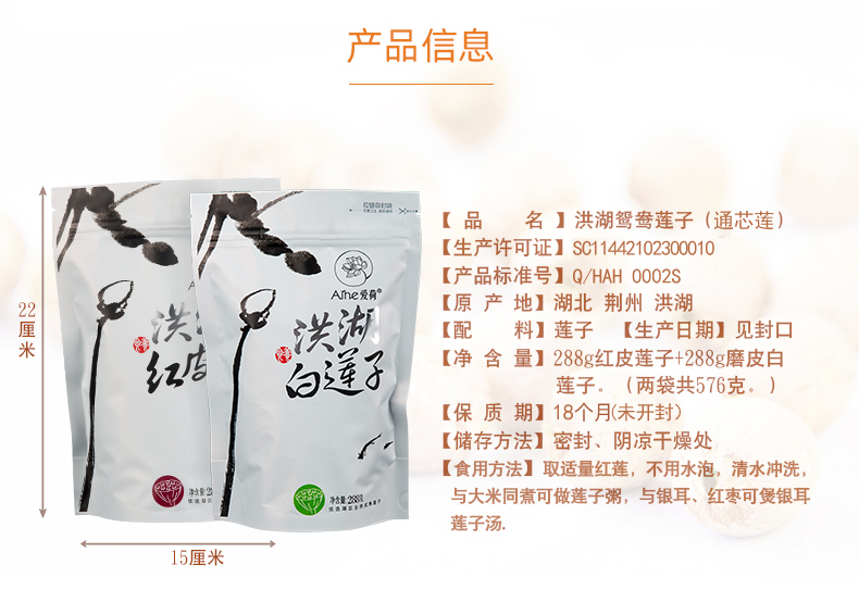 产品规格: 莲子(2袋装共576克)