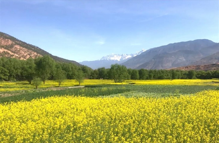 桃花、梨花、油菜花开得正好