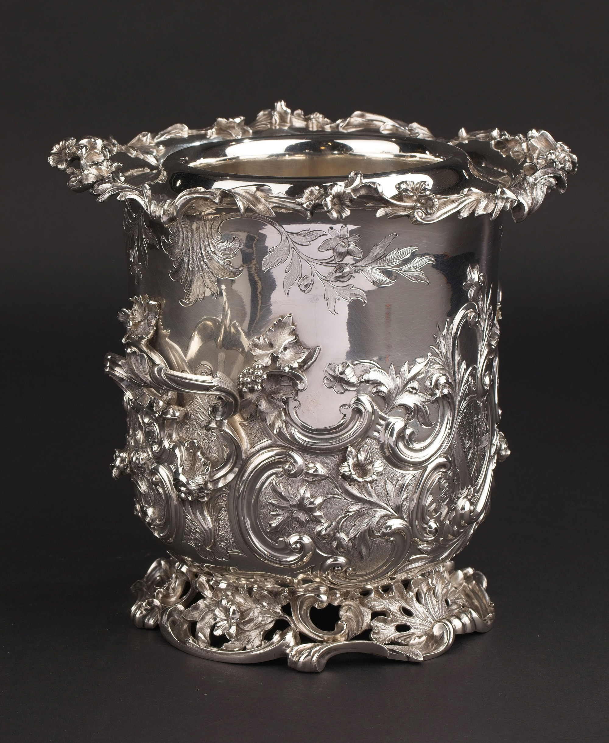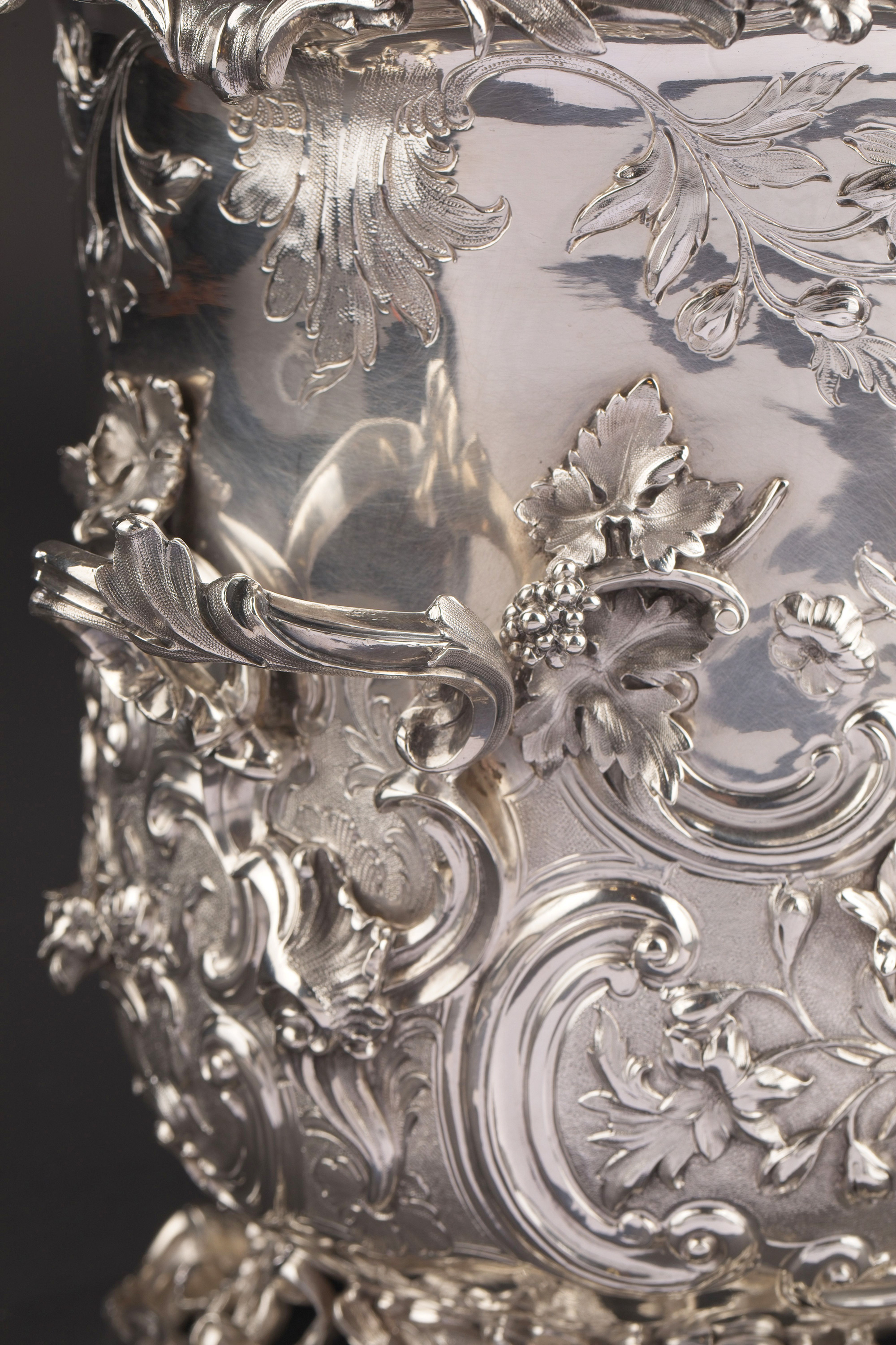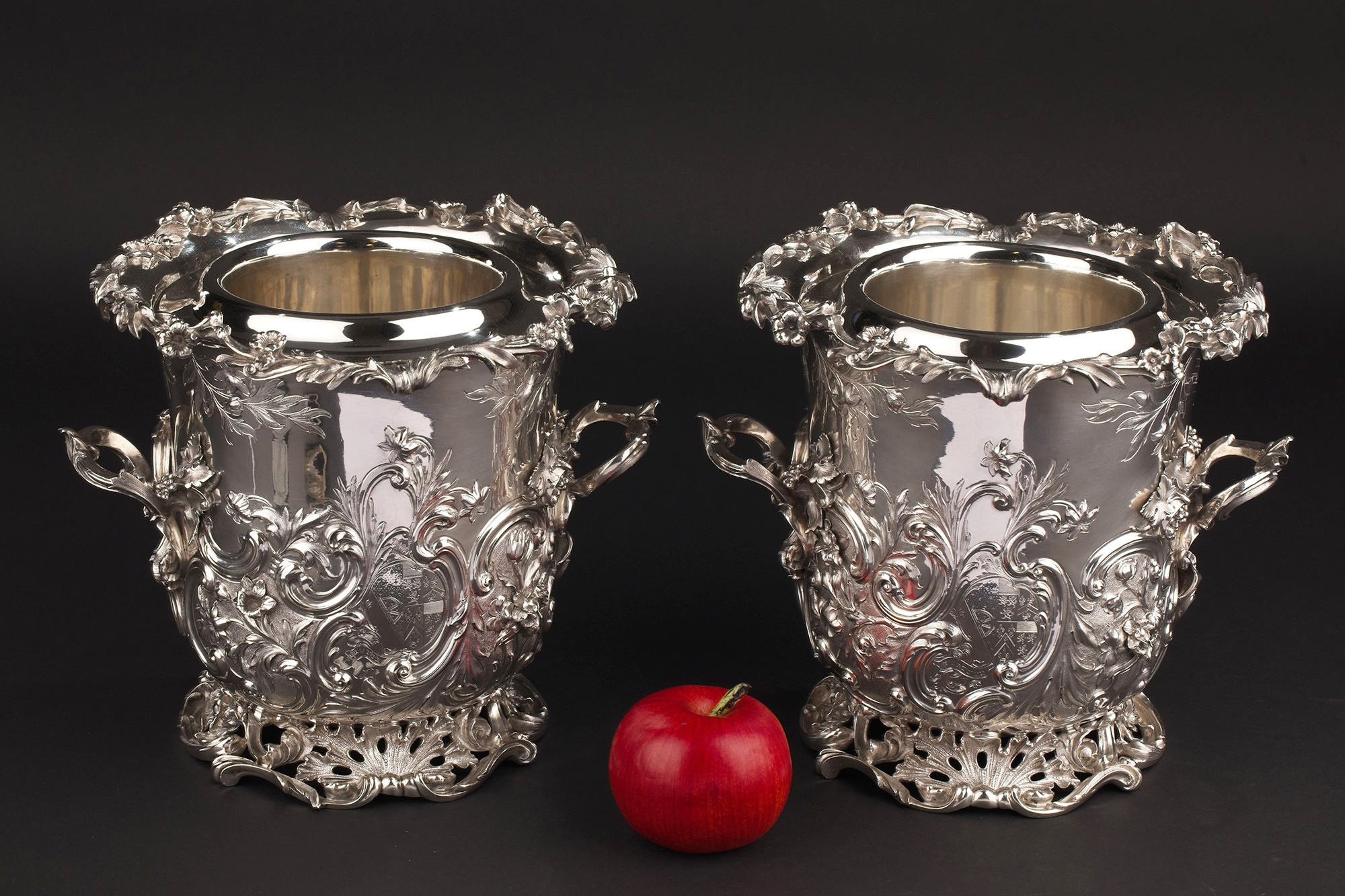 19世纪初英国顶级银坊Edward Barnard & Sons出品路易十五风格繁华卷叶主题纯银精雕冰酒桶一对