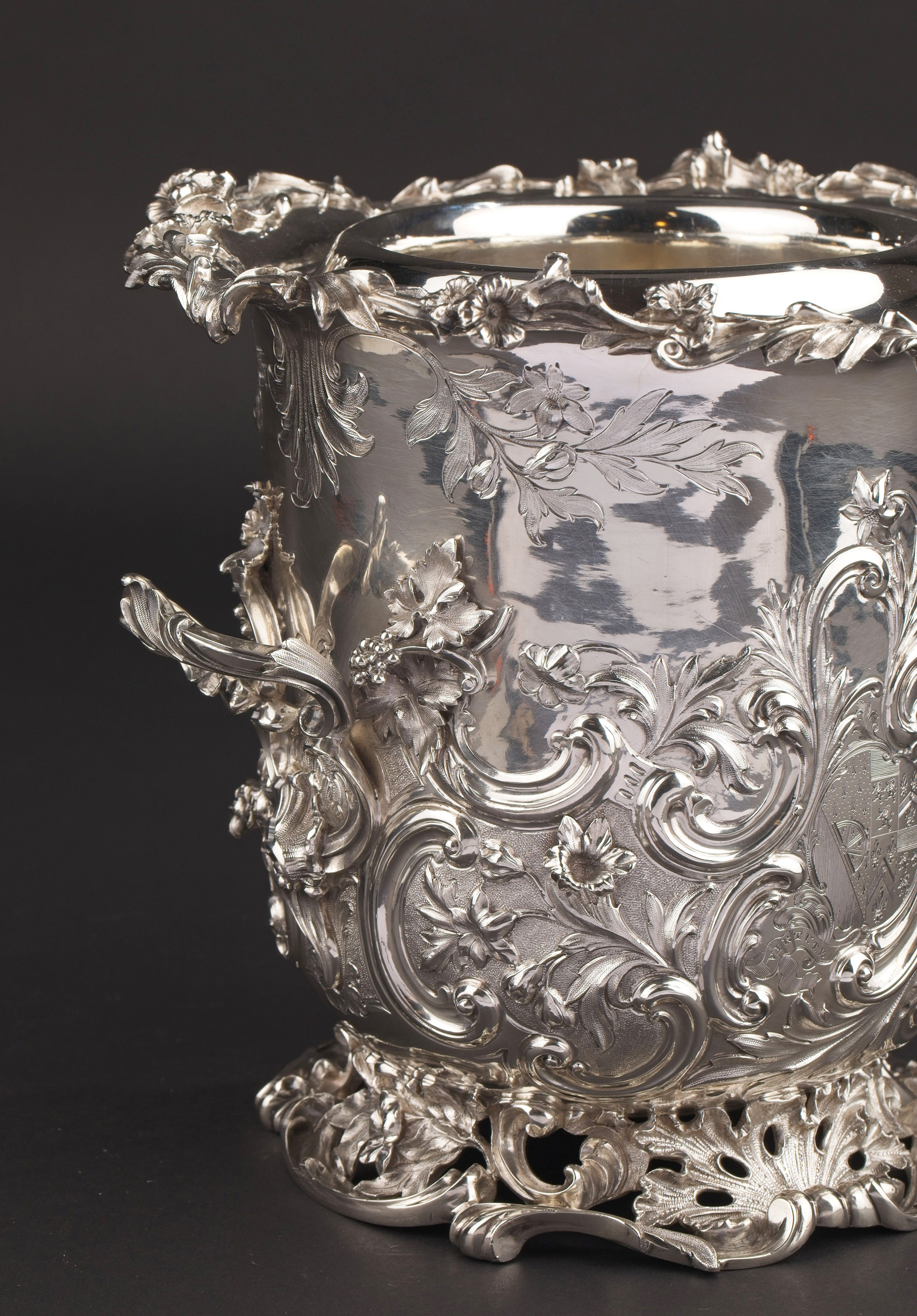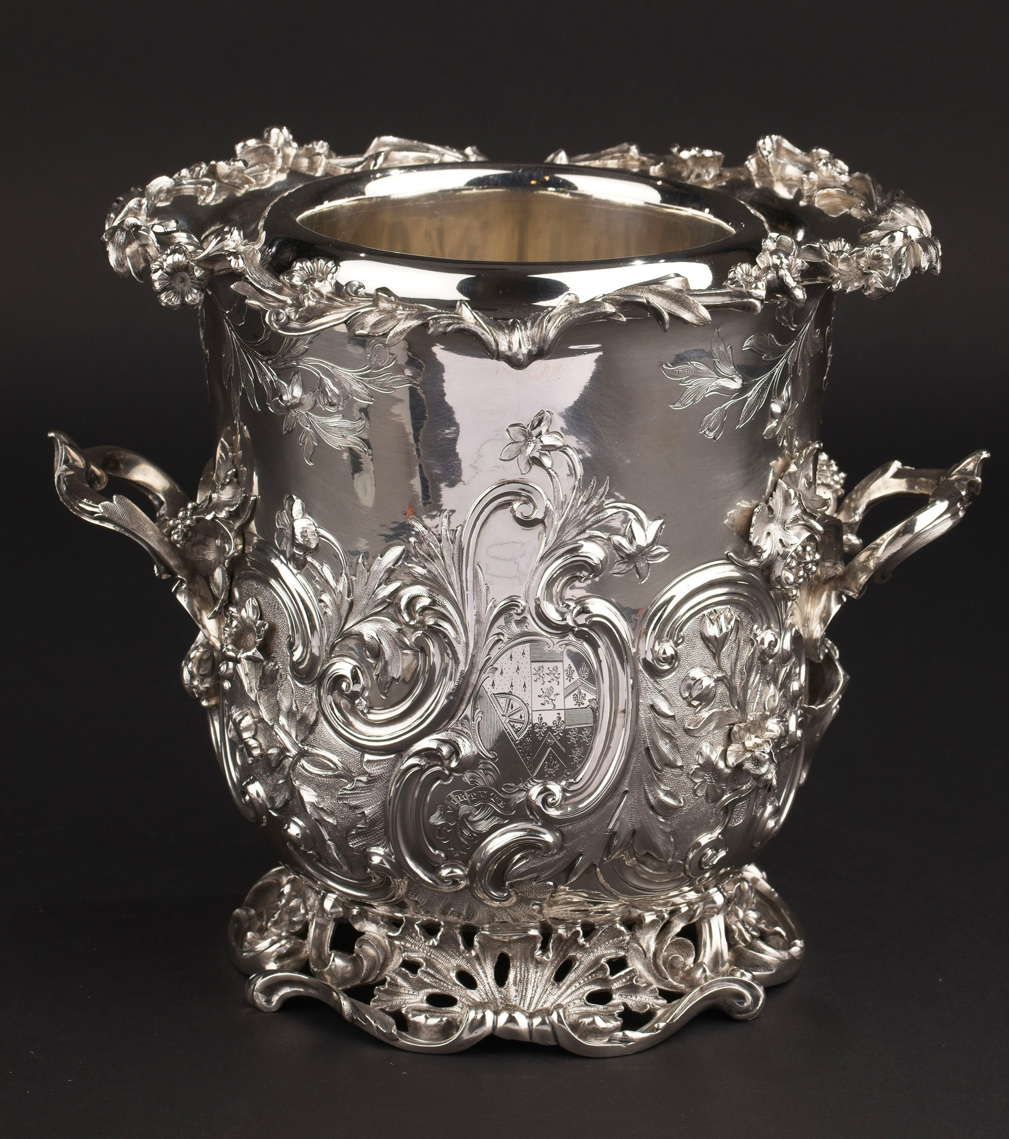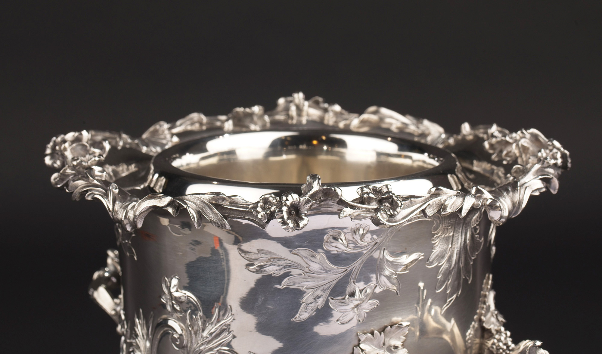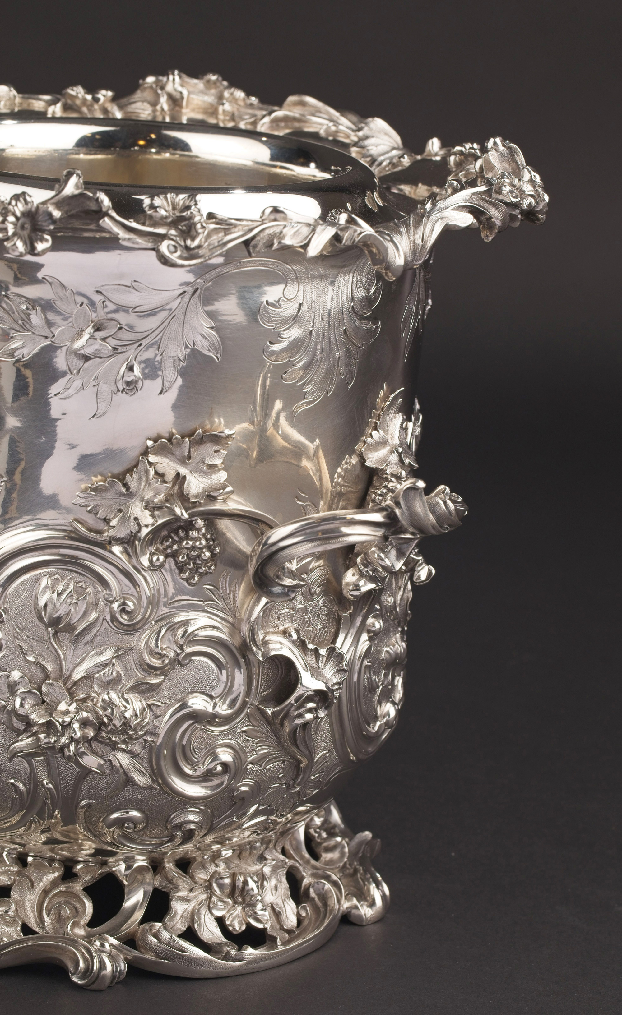 19世纪初英国顶级银坊Edward Barnard & Sons出品路易十五风格繁华卷叶主题纯银精雕冰酒桶一对