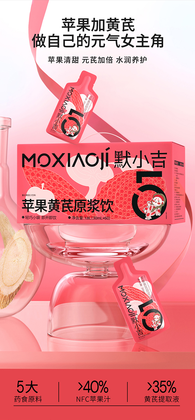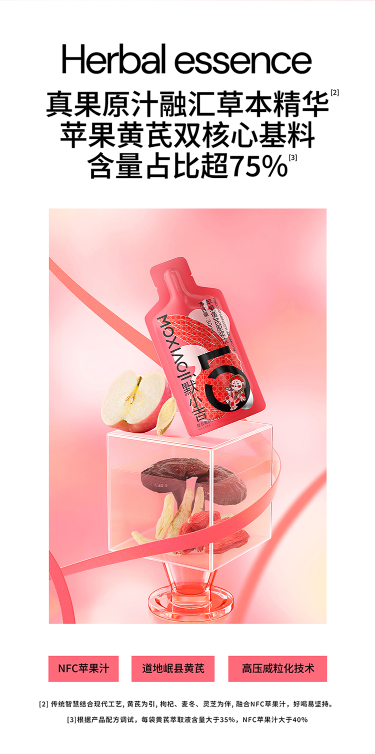 默小吉300ml、900ml、1800ml盒装苹果黄芪原浆饮,苹果黄芪水麦冬枸杞原浆灵芝nfc苹果复合果蔬汁饮料