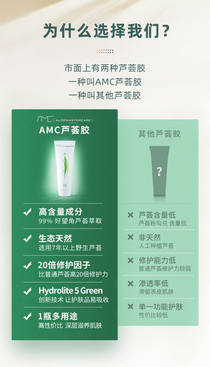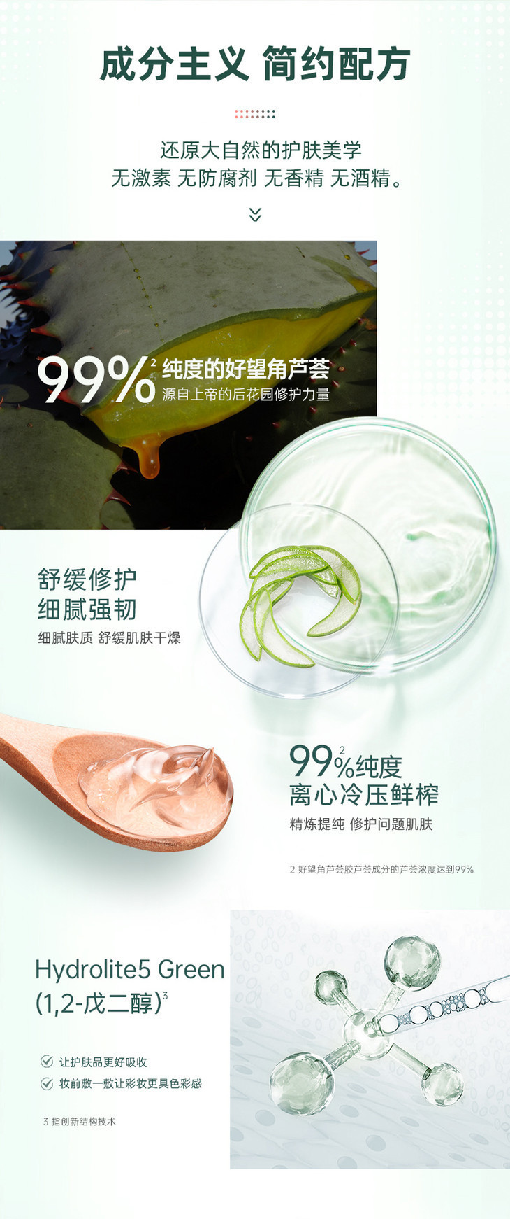 【产品卖点】甄选濒危物种好望角芦荟,比普通芦荟高20倍芦荟苦素(修护因子)鲜榨萃取工艺最大程度保留芦荟多糖