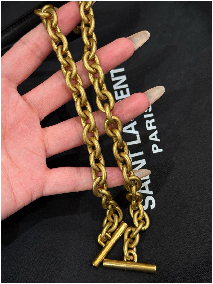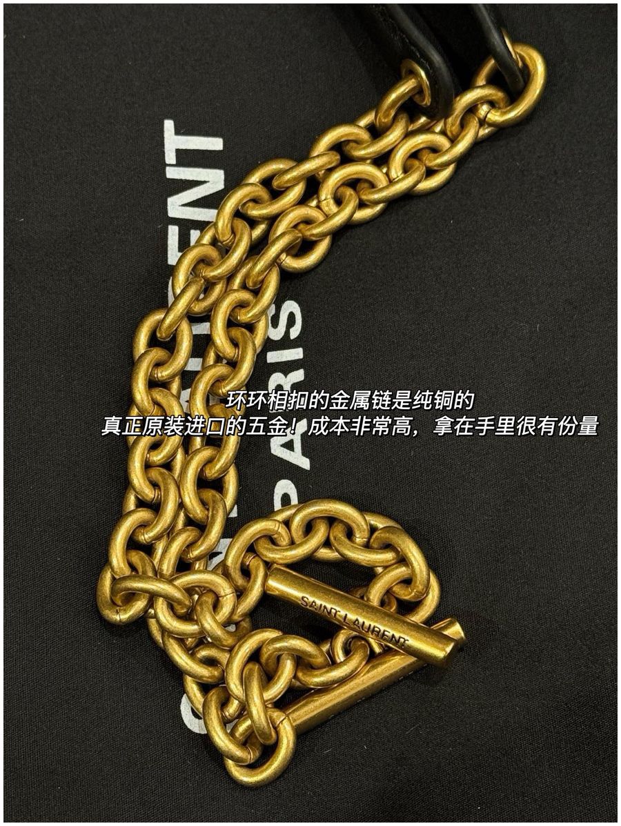 五金链条全部都是铜链条,鸡眼扣上的字母激光腐蚀再去镀金,这样字母的立体感更好,更加的耐腐蚀。只有好的五金才会有这样光泽和质感