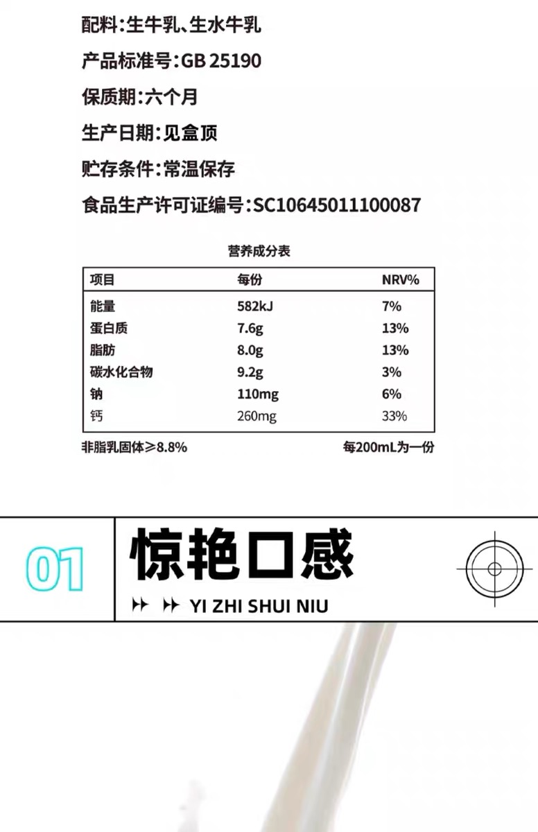 皇氏乳业一只水牛纯牛奶电商版200ml*10盒