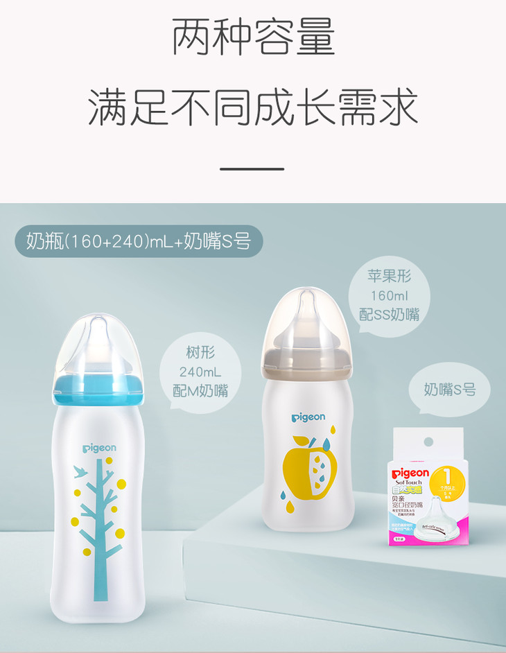 Pigeon贝亲婴儿宽口径玻璃奶瓶新生宝宝硅胶护层彩绘奶瓶防摔160/240ML