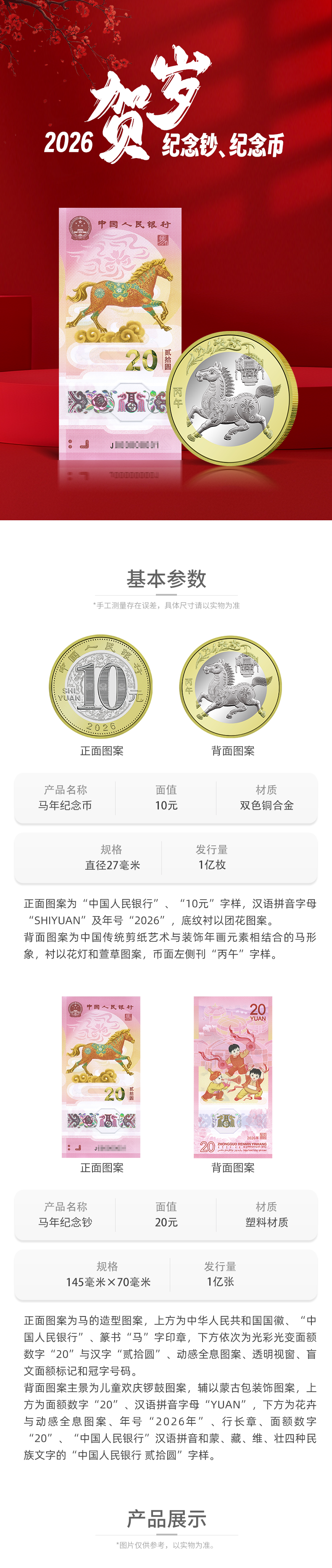 2026马年纪念币钞套装(一币一钞)(两币两钞)
