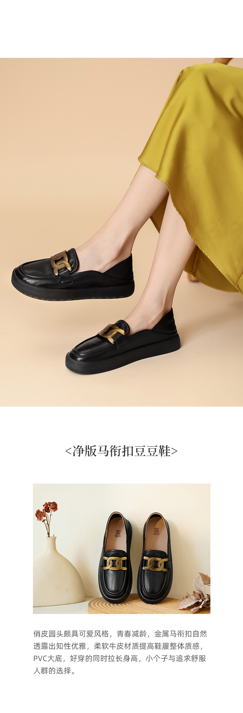 西村名物2021秋季新款真皮英伦风乐福鞋套脚平底软底单鞋女T21CM34071