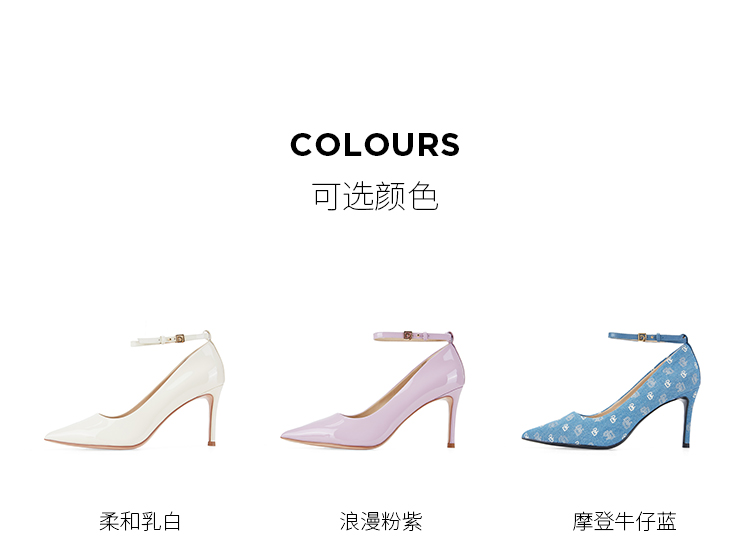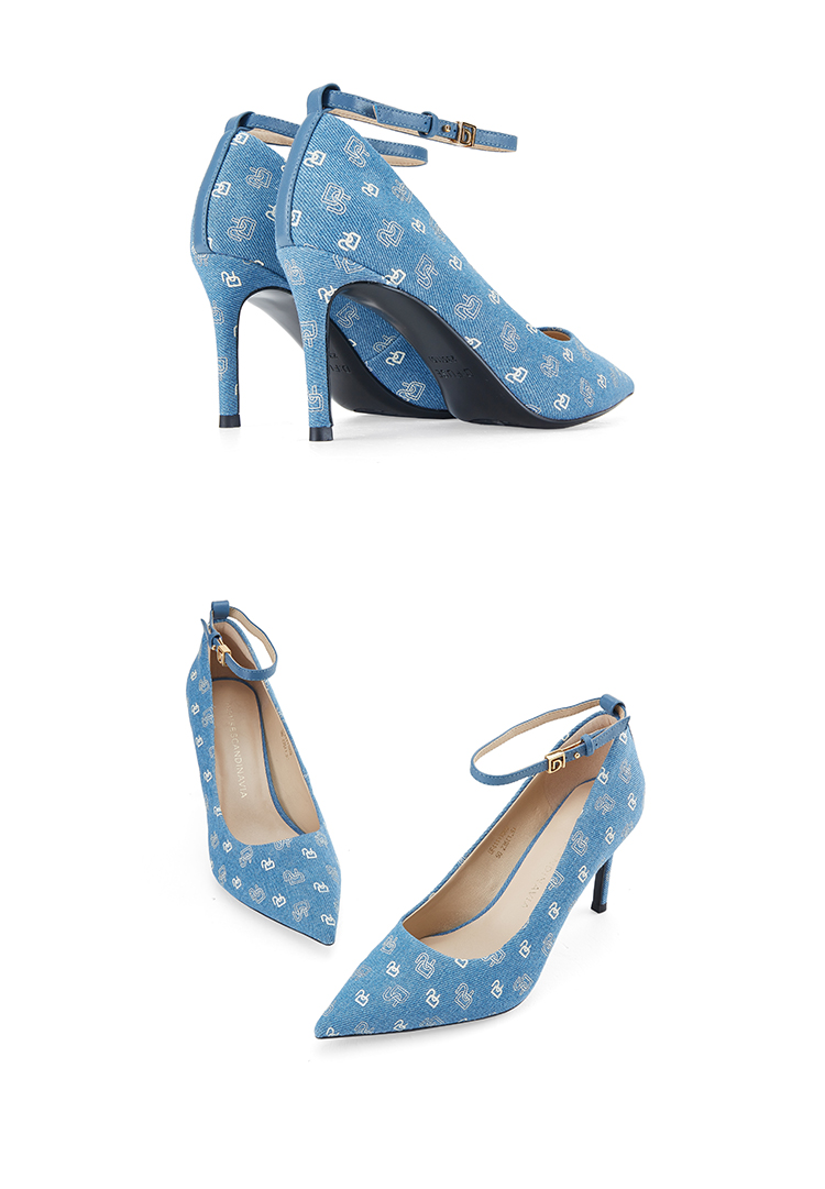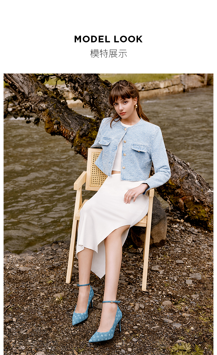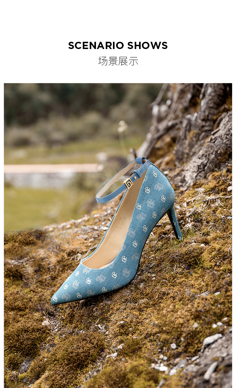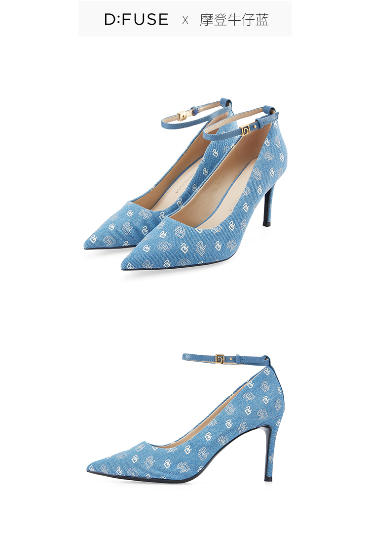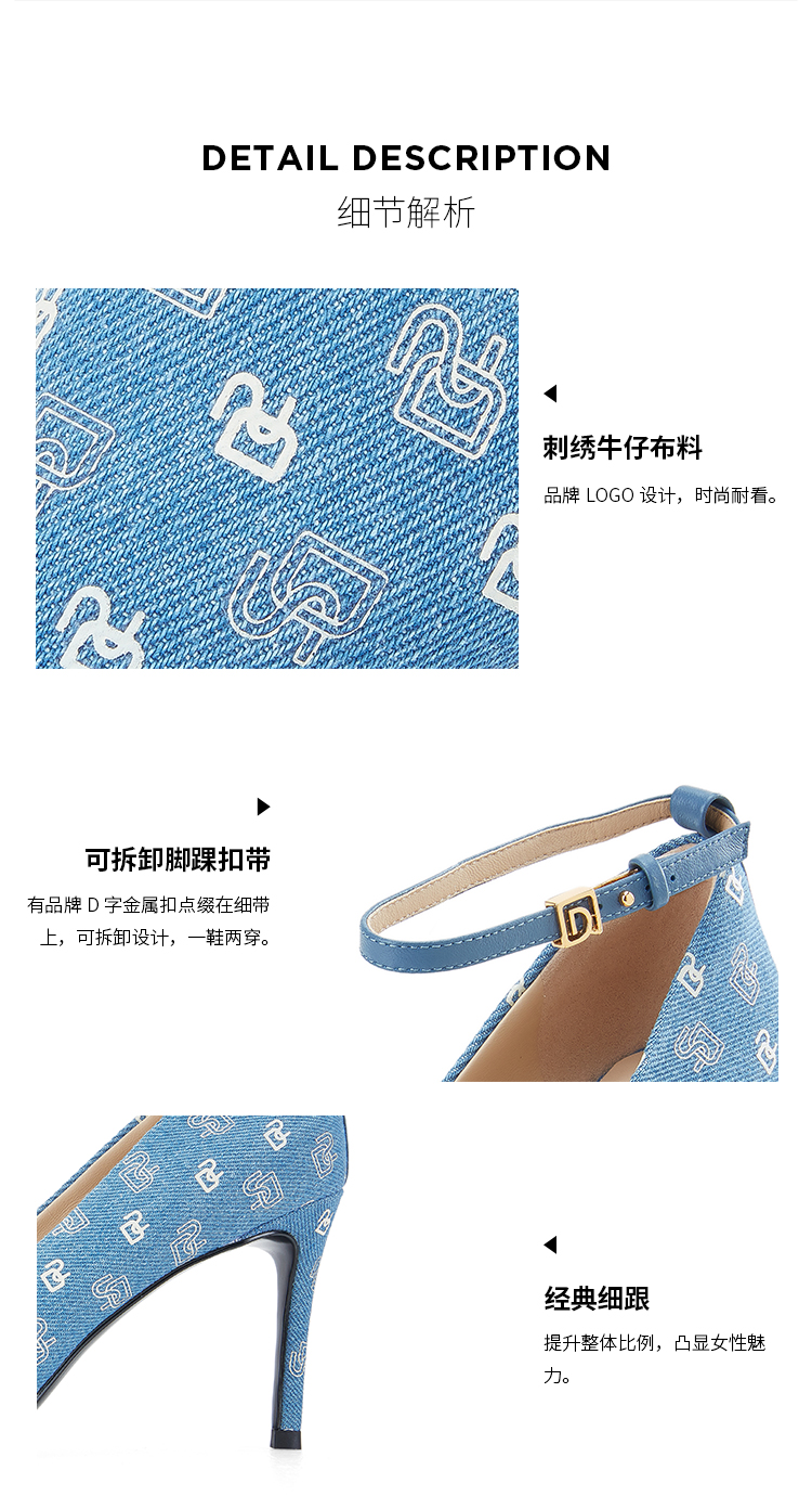 Dfuse迪芙斯2024春季新款尖头刺绣牛仔蓝简约高跟单鞋DF41111003