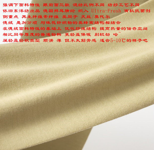 跟前三款一样 不细表了 再生纤维素纤维 含量较高 是主角 德绒算是加分项 哈~