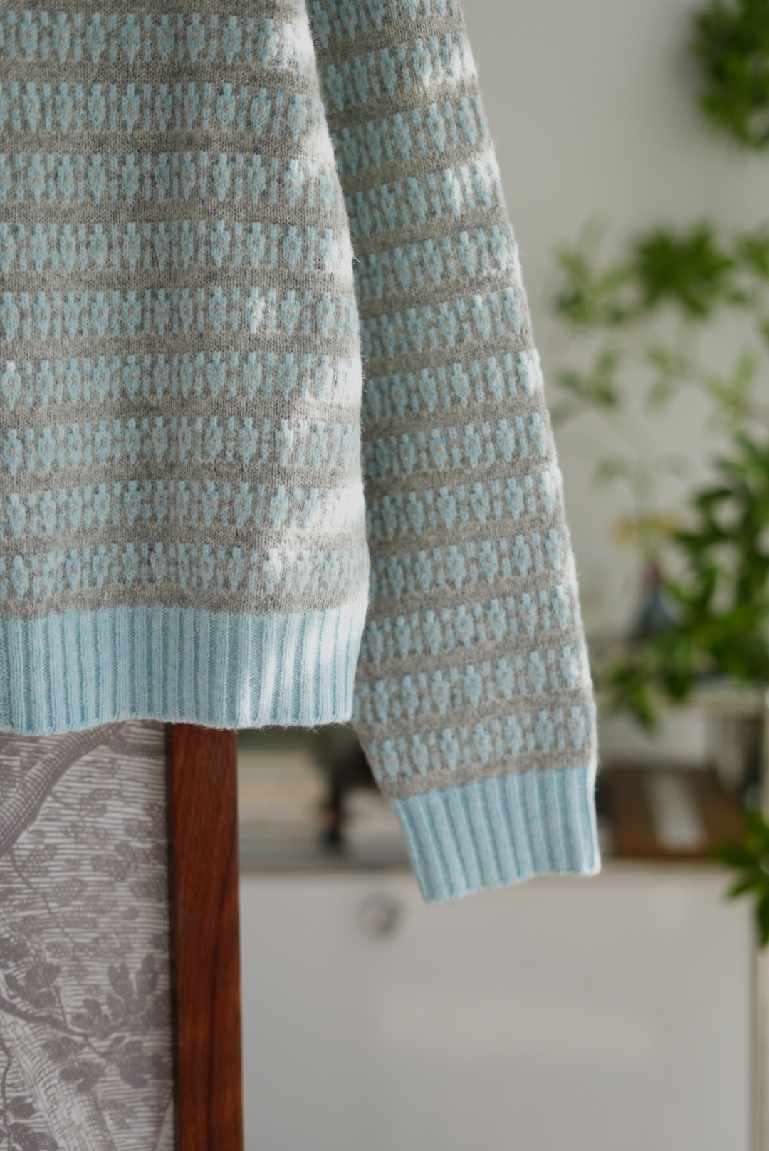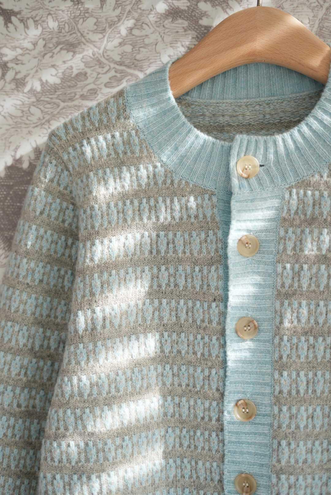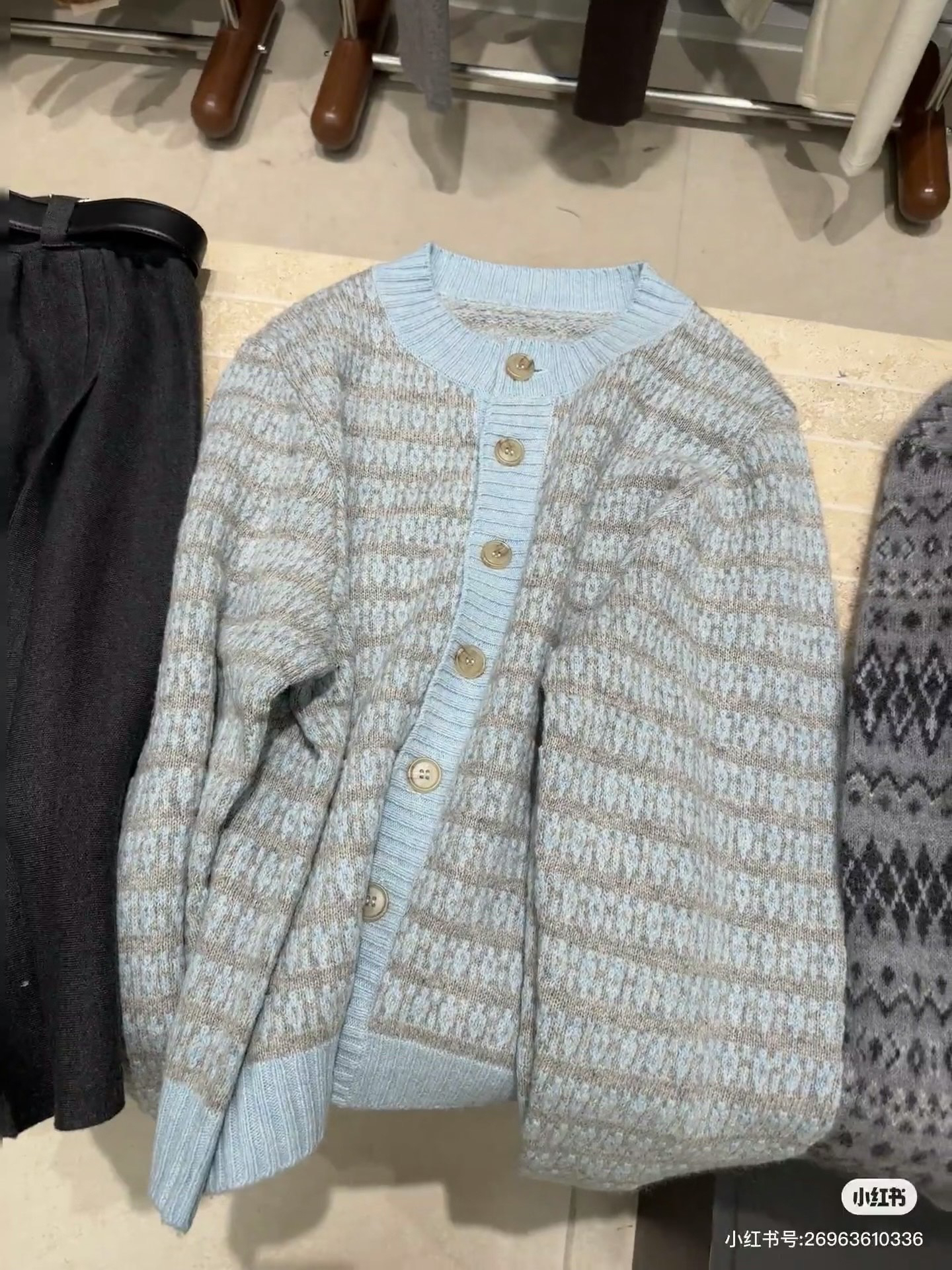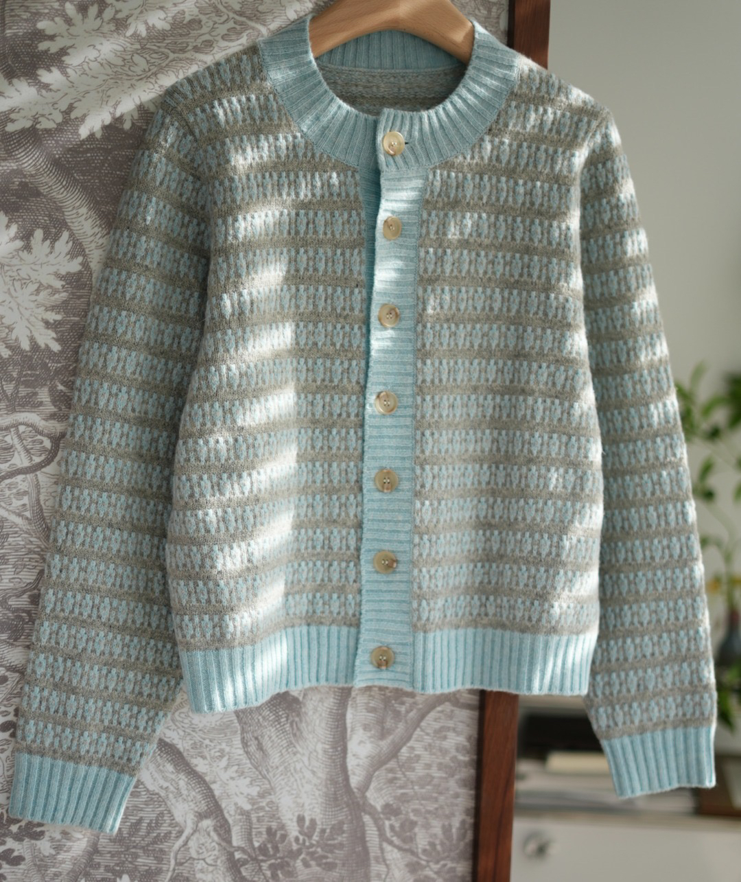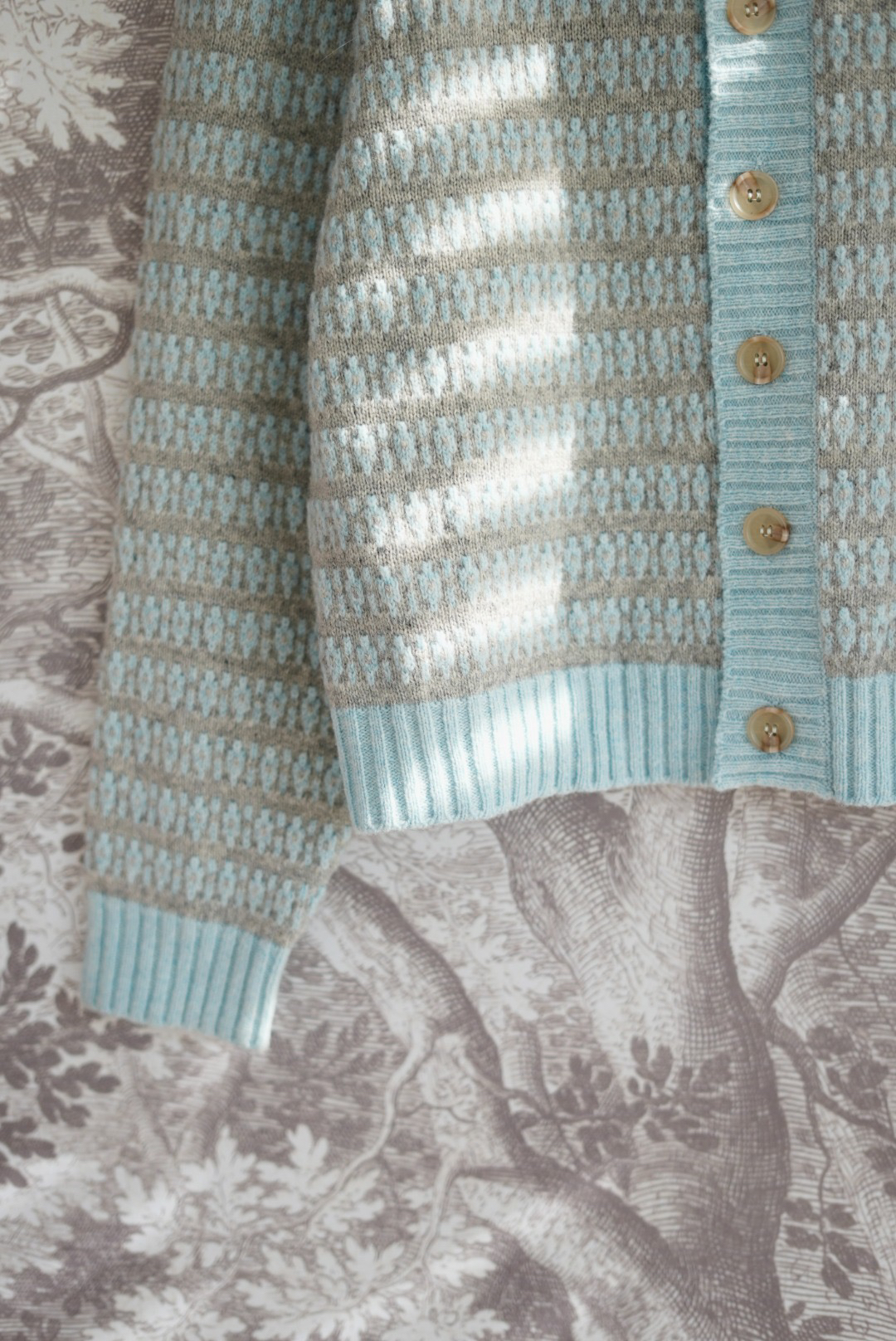冬日氧气感开衫|70% 羊毛混纺 浅蓝撞色肌理款