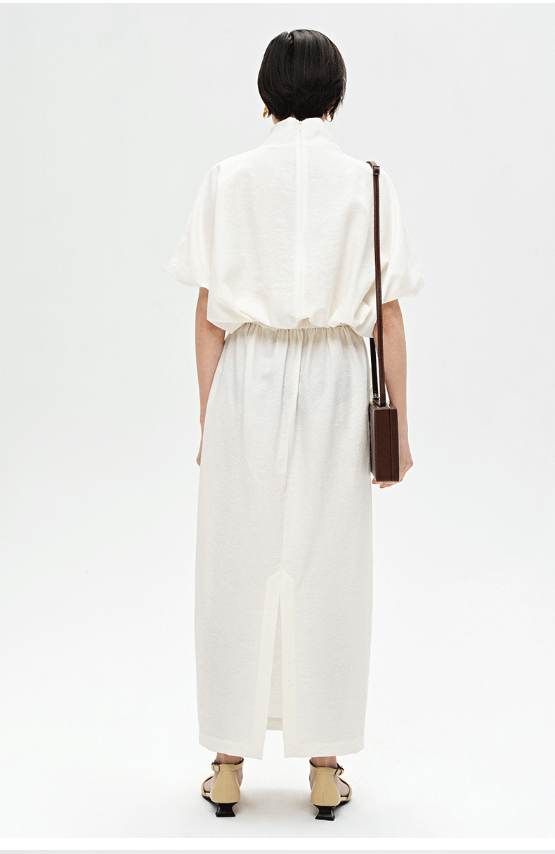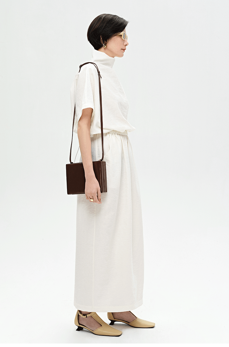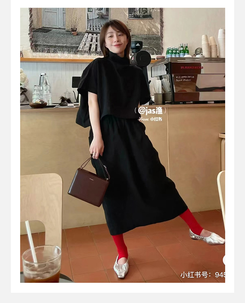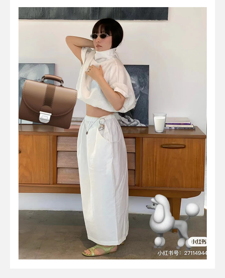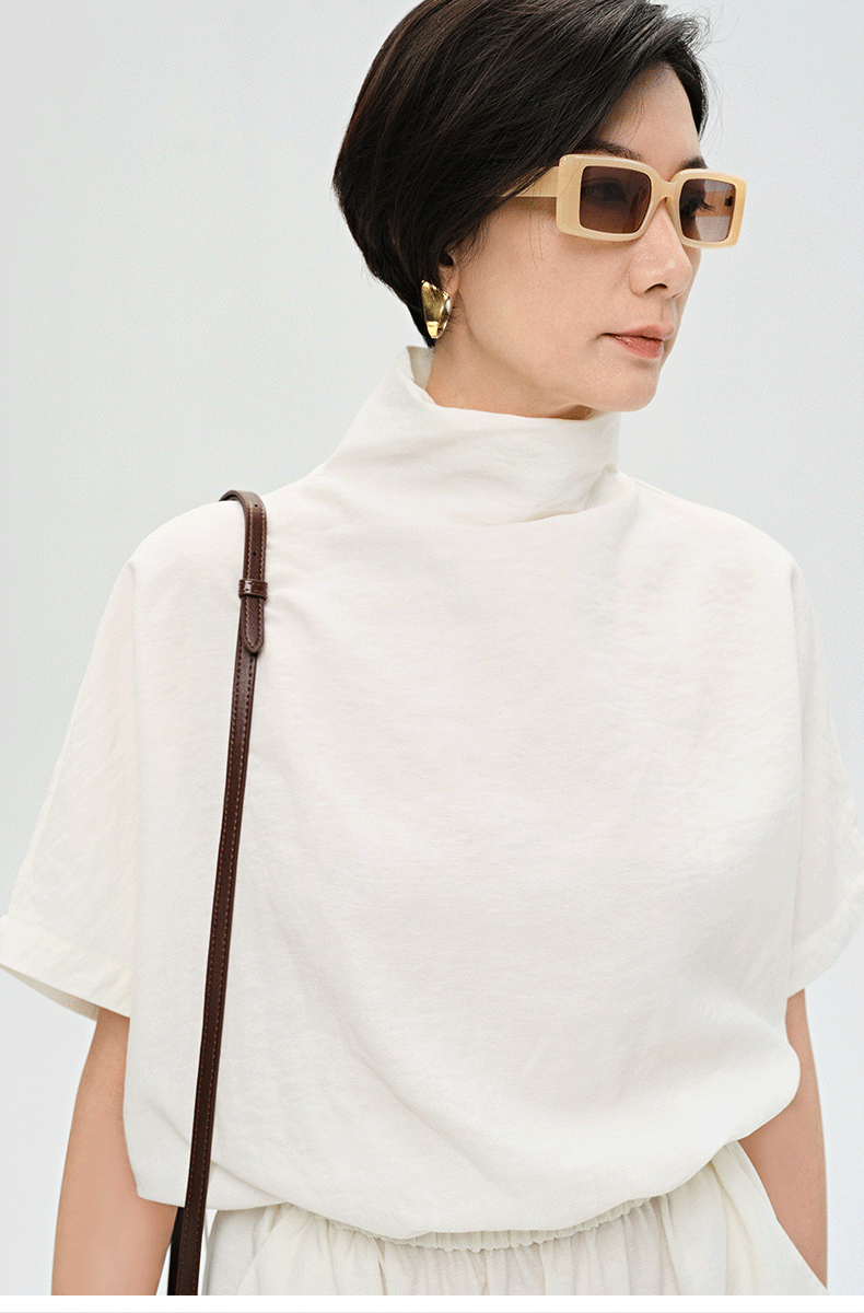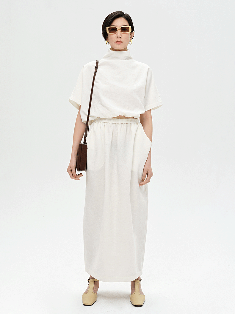 HIDEMI 简约设计感微荡立领半袖廓形套装 黑色/白色 上衣/半身裙
