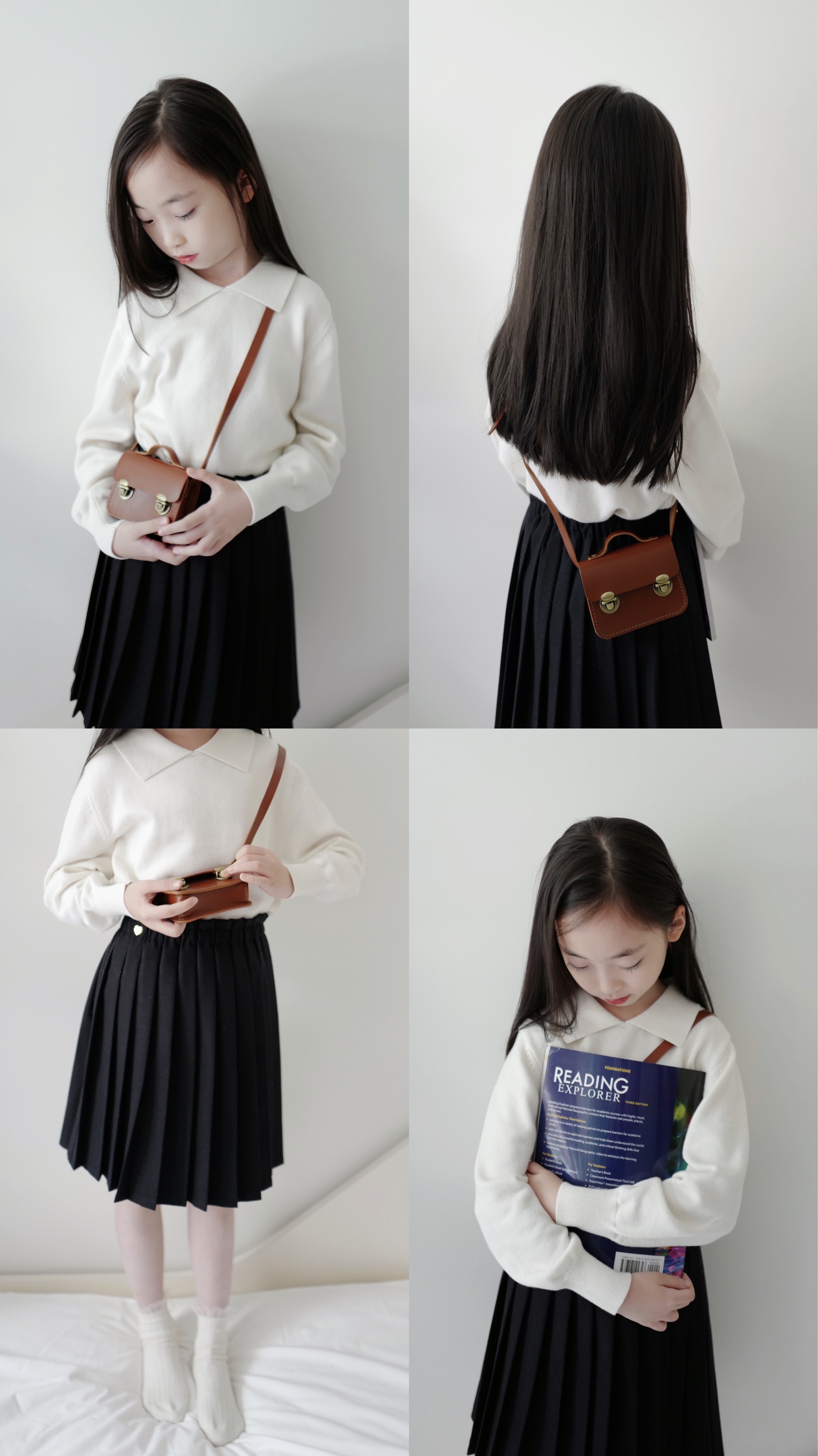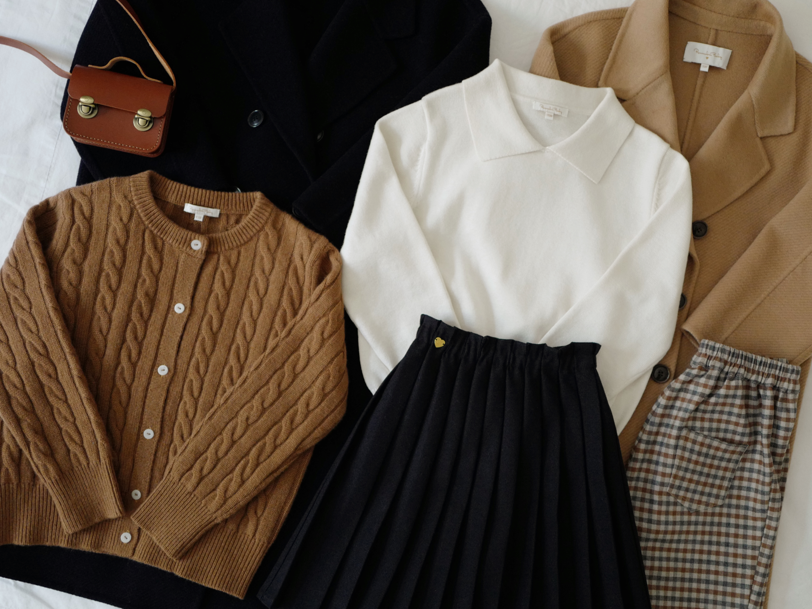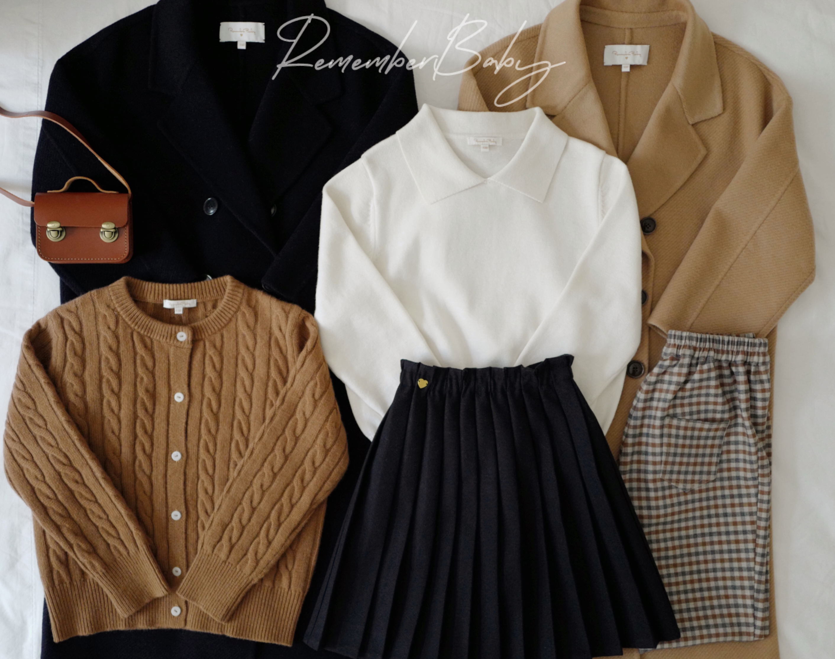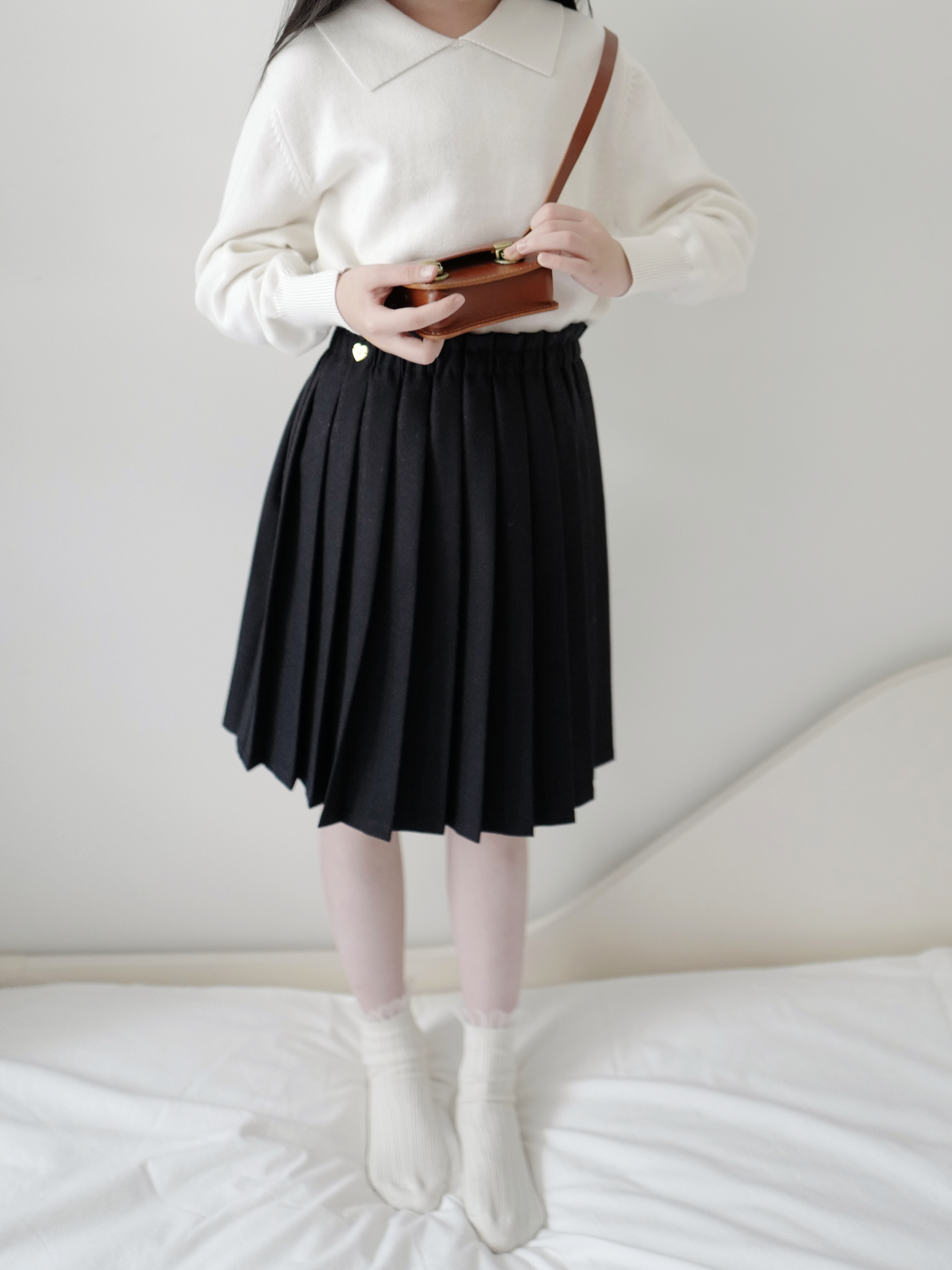 现货 / MILD&RADIANT | 亲子款 学院风 奶白棉羊绒翻领套头上衣 + 金标logo百褶裙