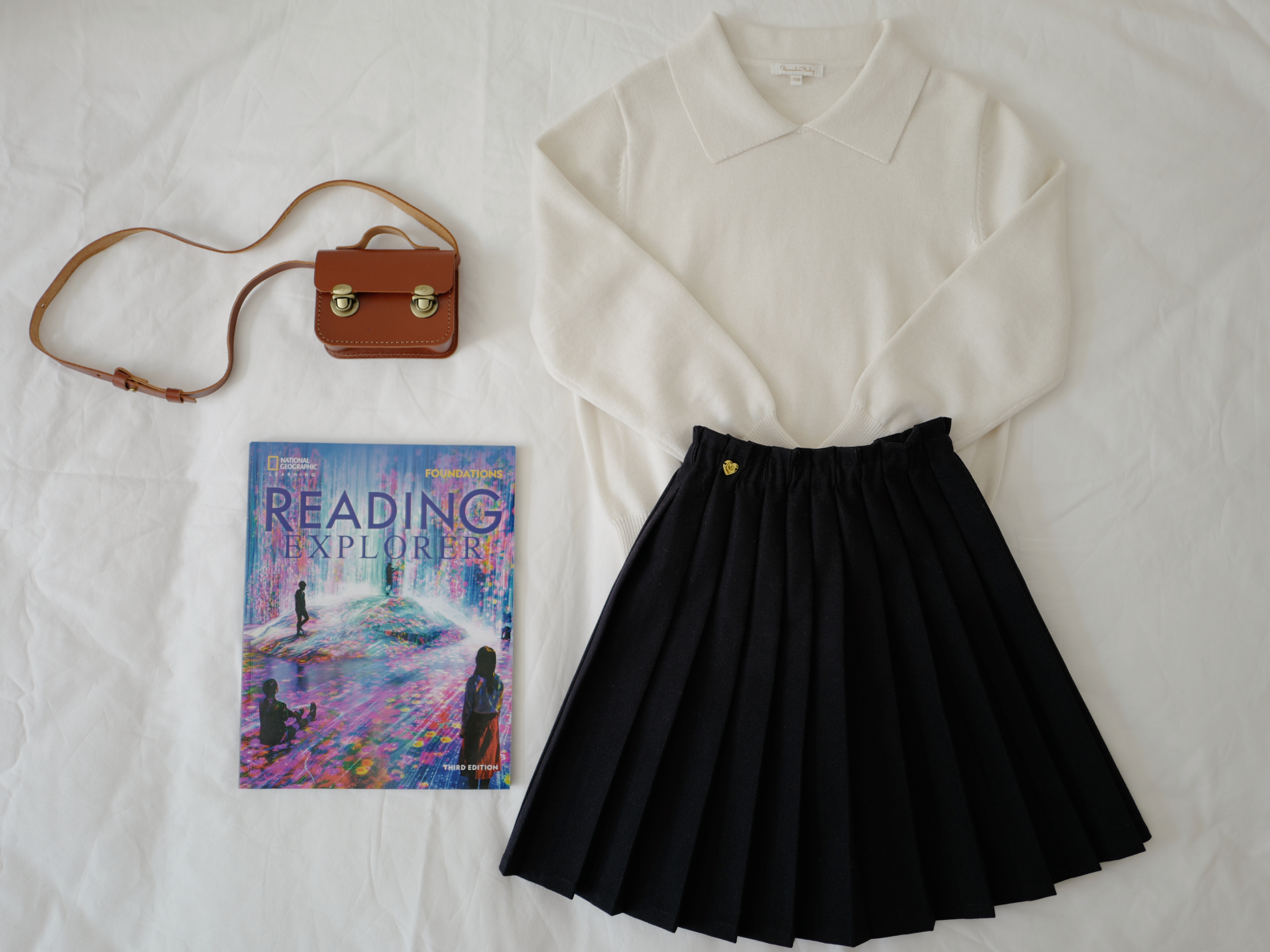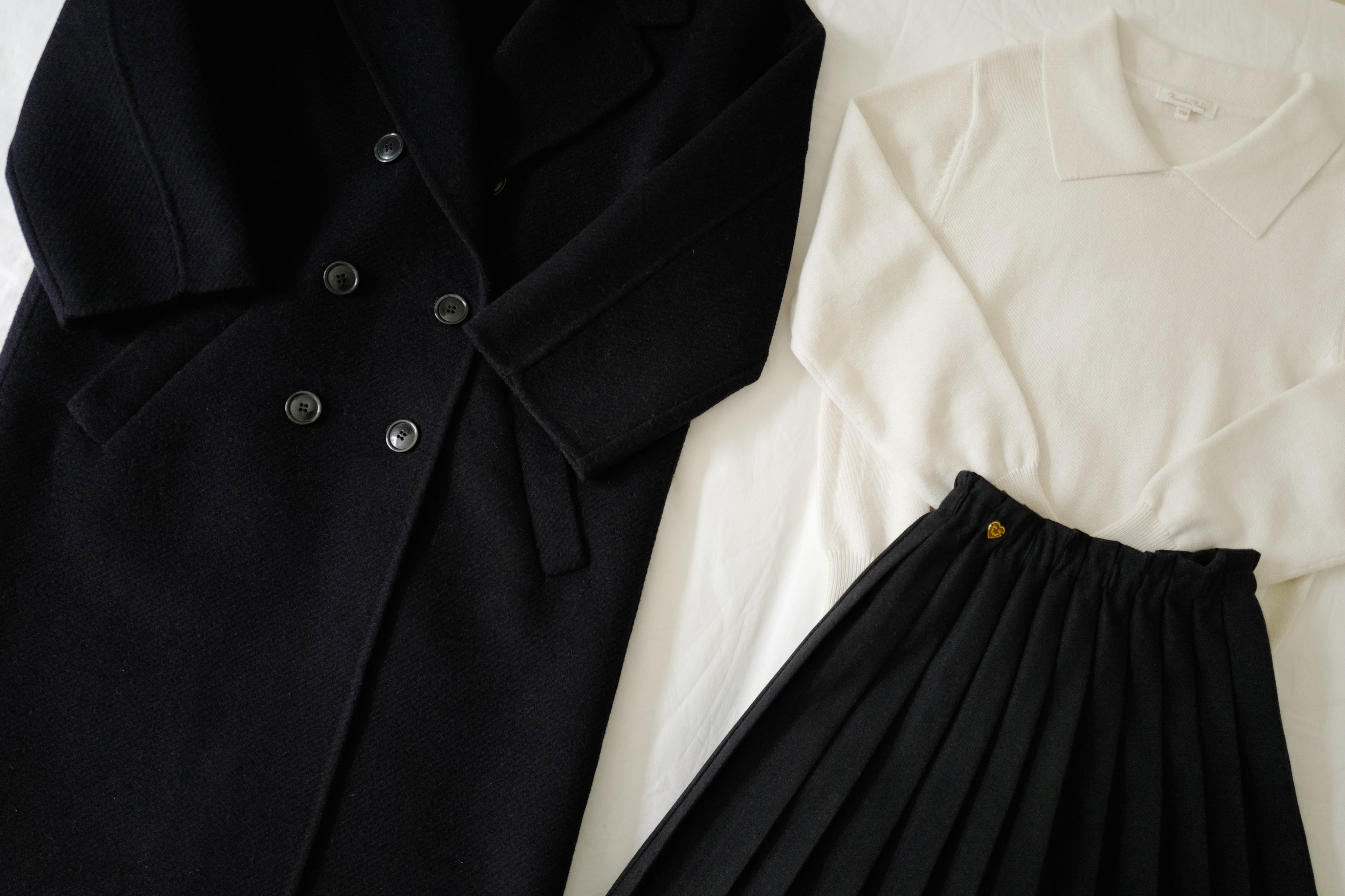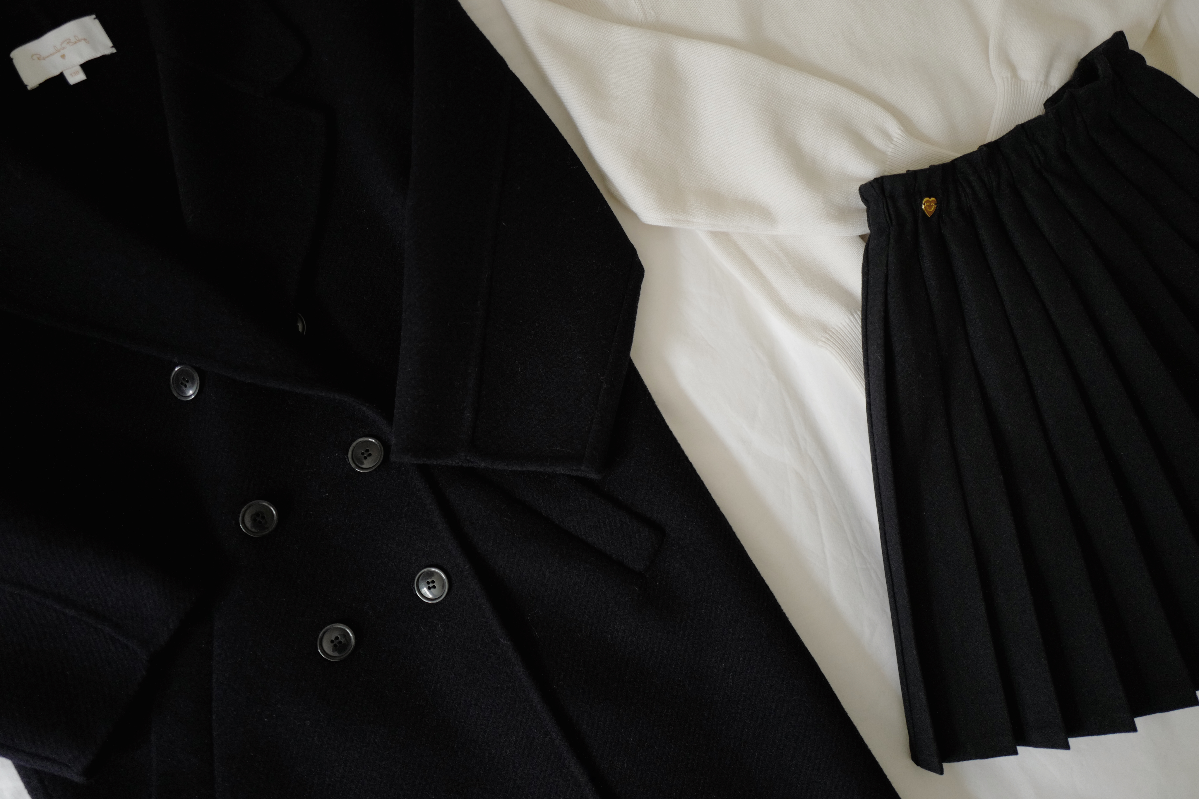 现货 / MILD&RADIANT | 亲子款 学院风 奶白棉羊绒翻领套头上衣 + 金标logo百褶裙