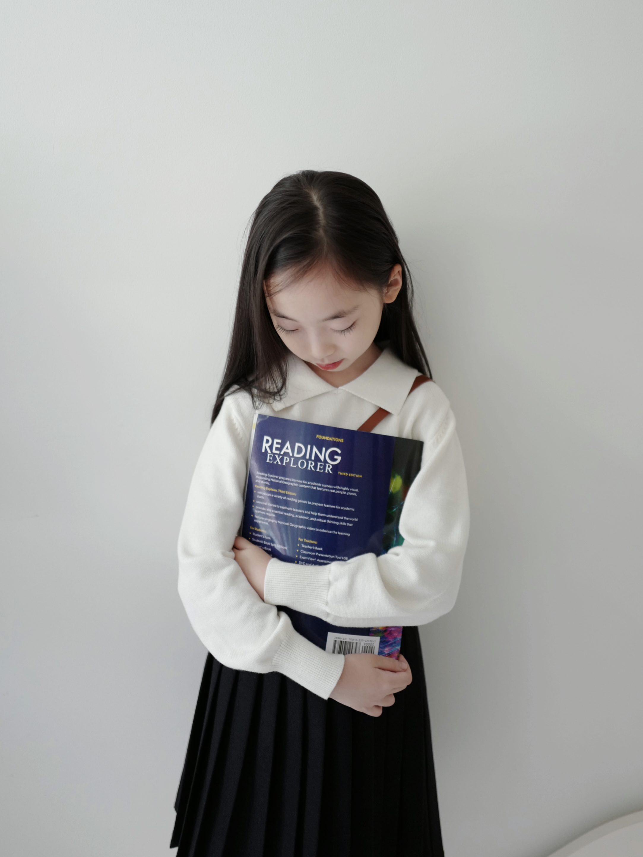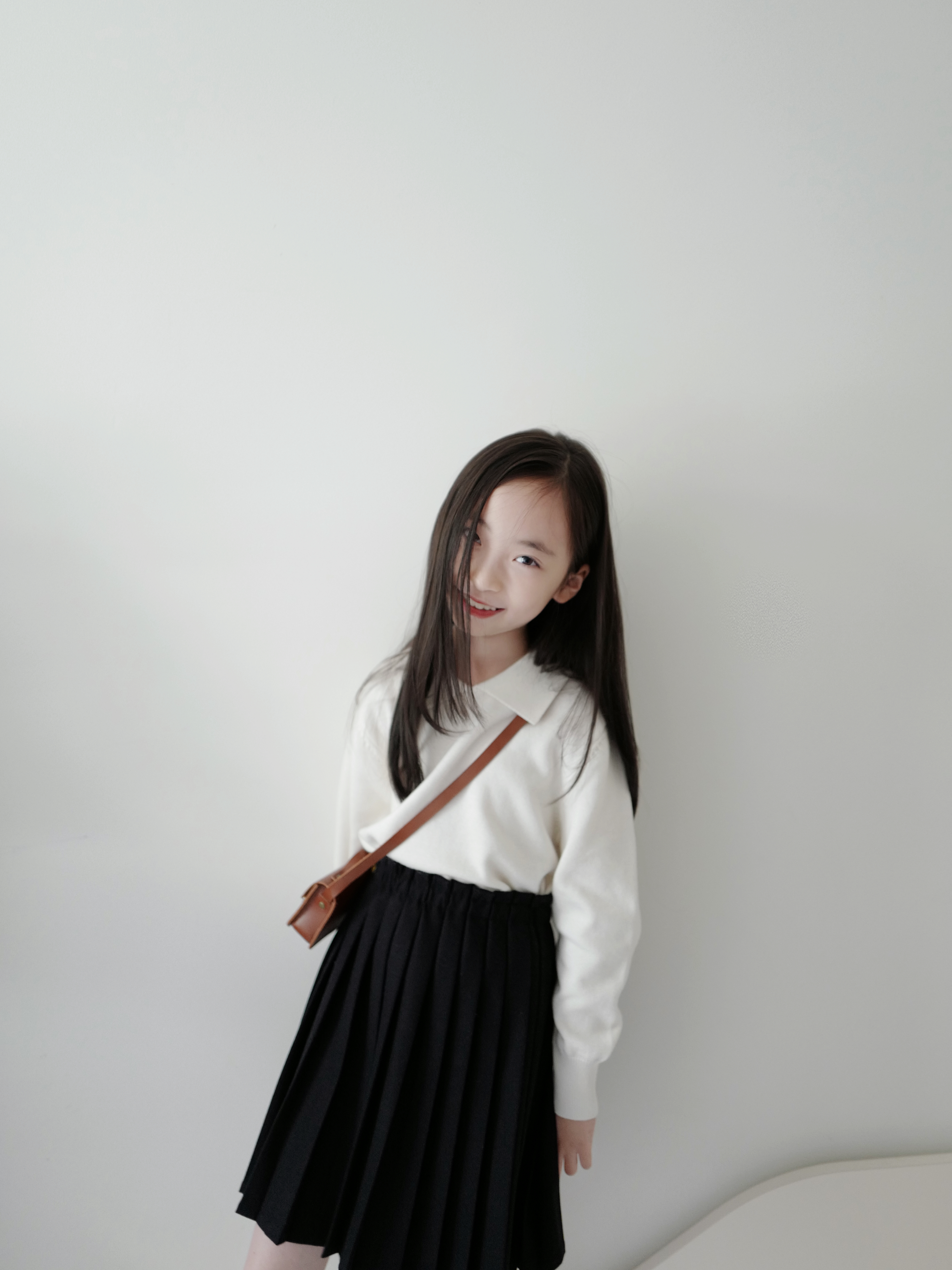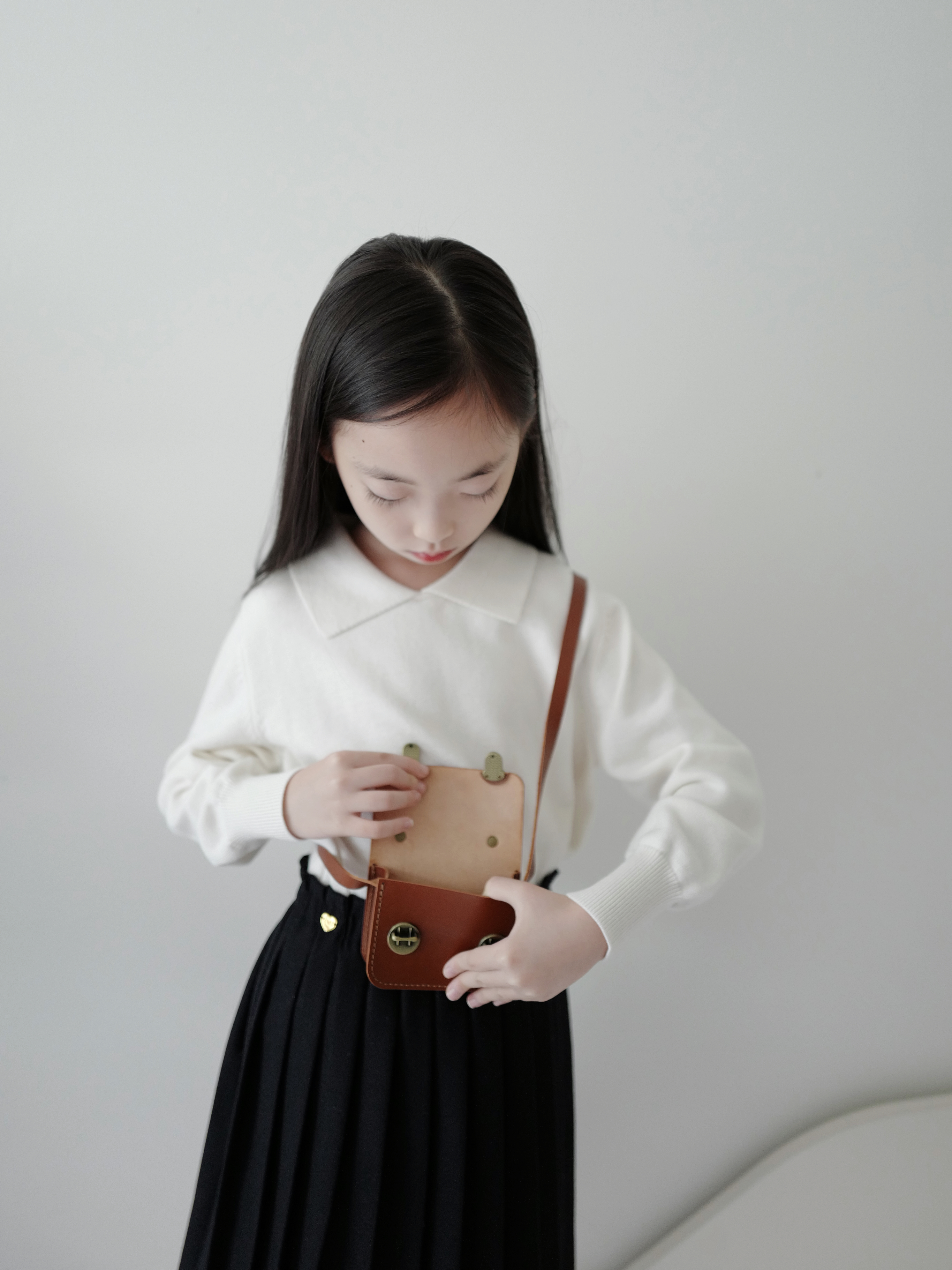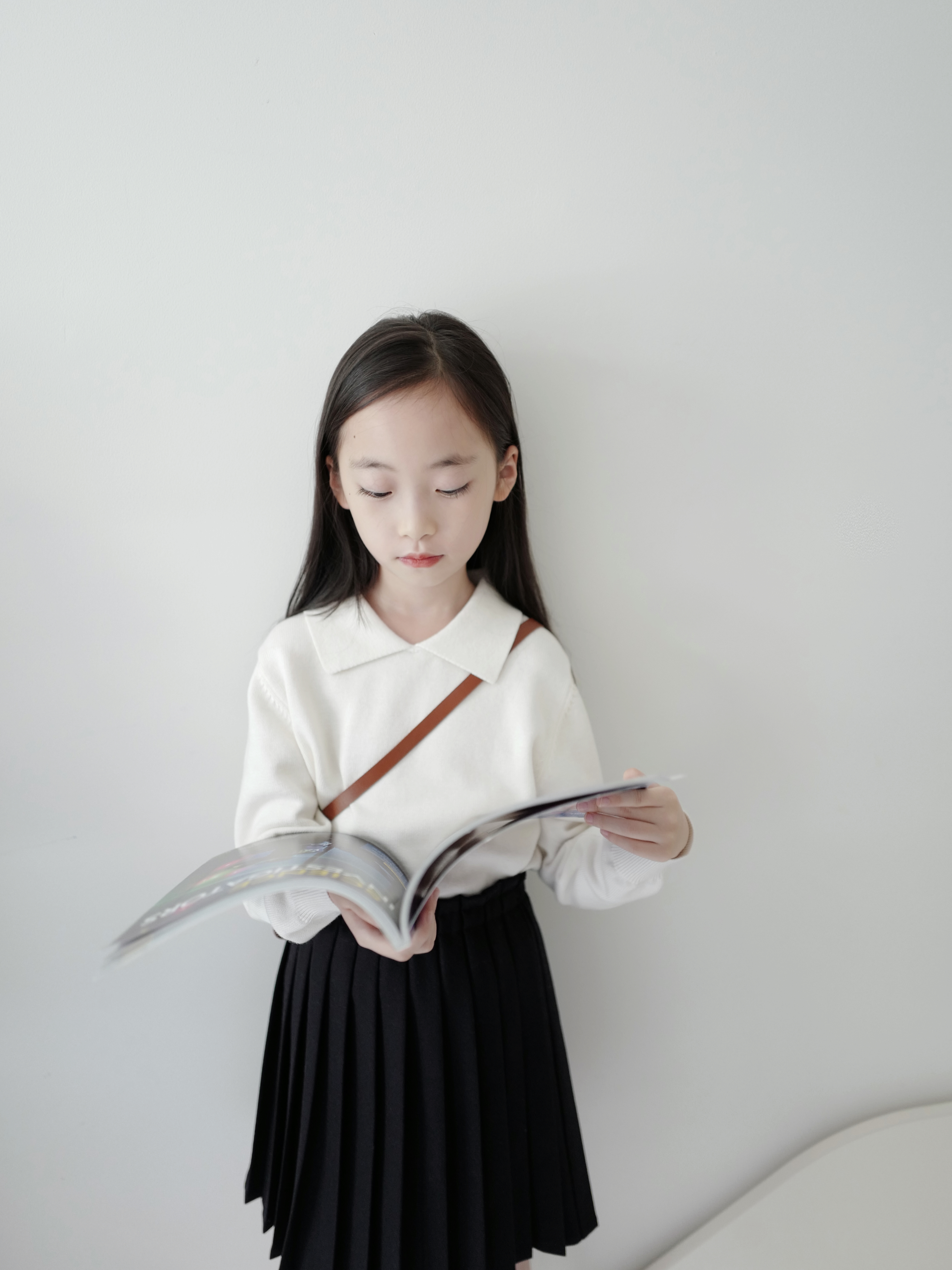 现货 / MILD&RADIANT | 亲子款 学院风 奶白棉羊绒翻领套头上衣 + 金标logo百褶裙