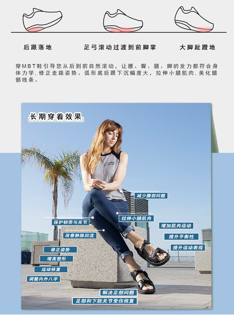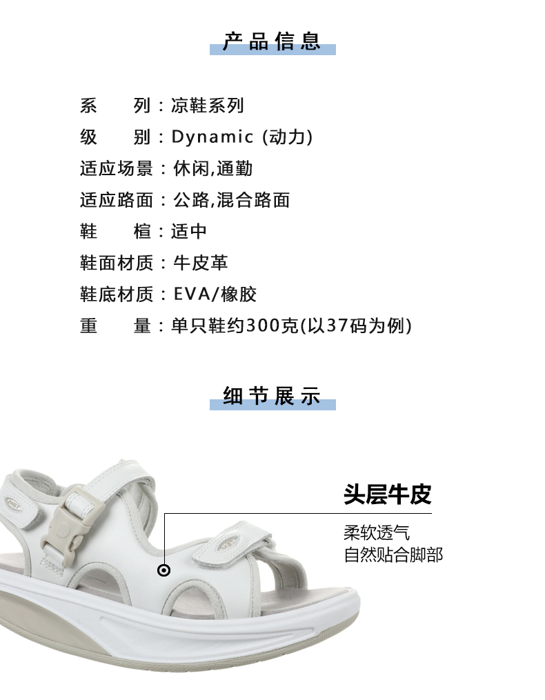 MBT足健康鞋女厚底休闲运动凉鞋 足弓支撑增高魔术贴牛皮 KISUMU