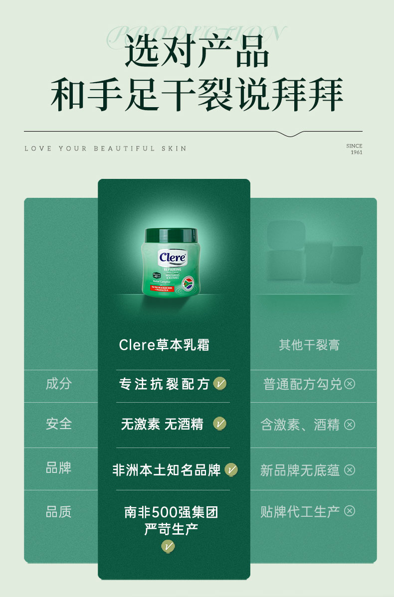 南非Clere克莱锐万用小绿膏🍃肌肤修复神器,1罐=身体乳+干裂膏+手足膜+保湿修复霜+止痒膏+驱蚊膏 驱蚊、止痒、滋润、修复、开裂、倒刺、起皮、皮屑仅需这一罐!💚