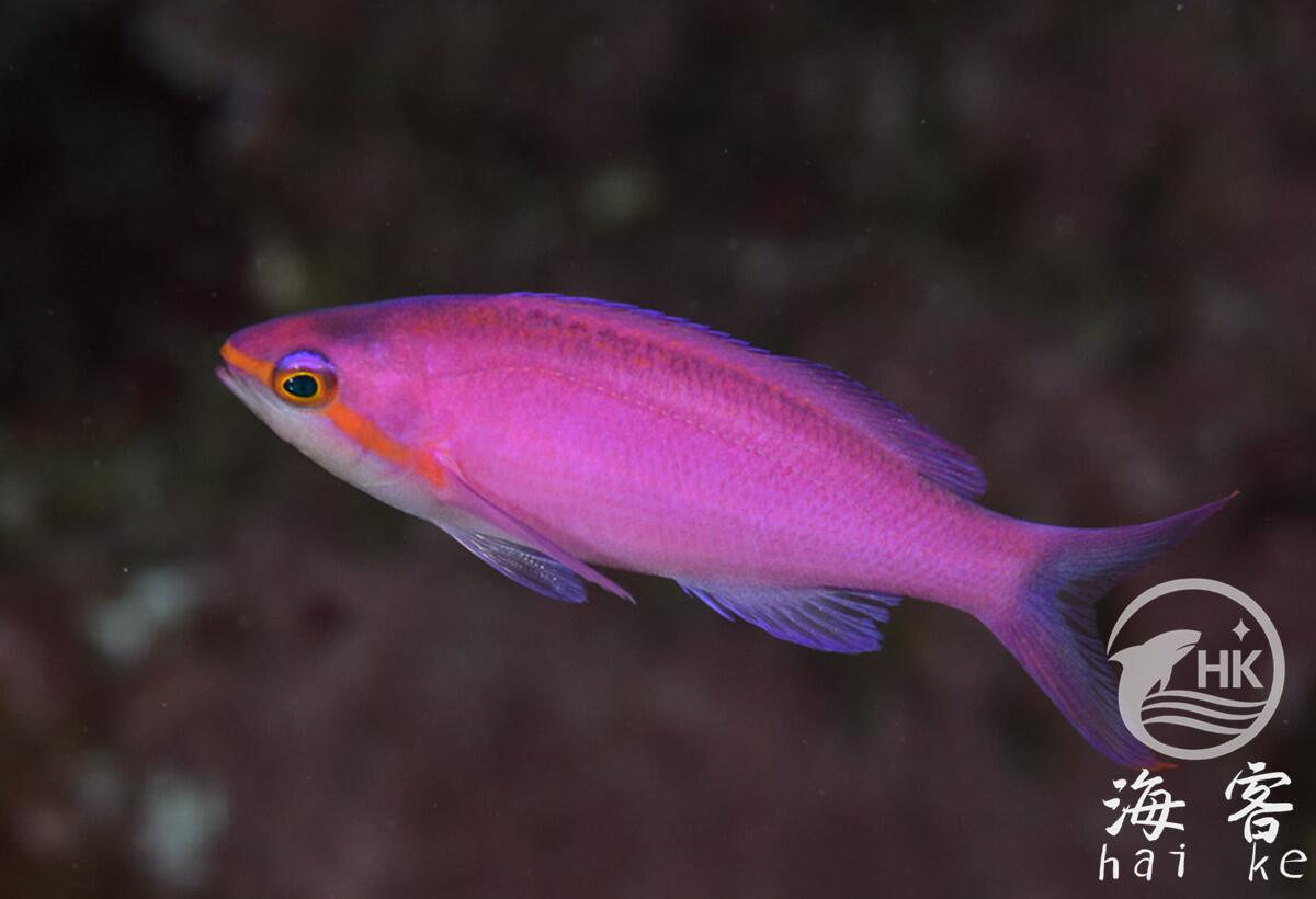 也叫黄背紫色海金鱼、紫色鱼。紫水晶的颜色,燕尾。身体是非常艳丽的紫色,鳃部是橘黄色的,幼鱼期背部是黄色。