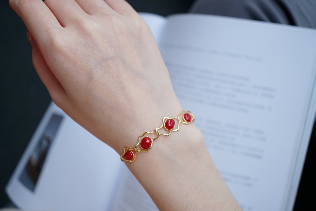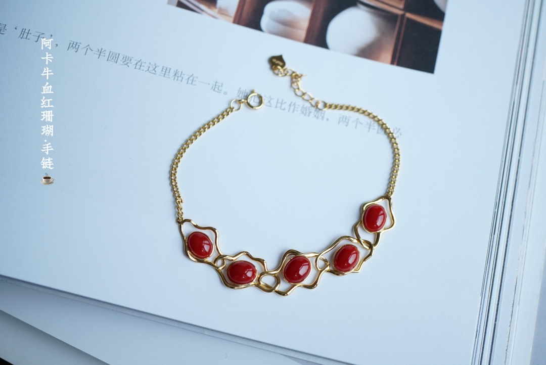 477096 18k金镶阿卡牛血红珊瑚·手链