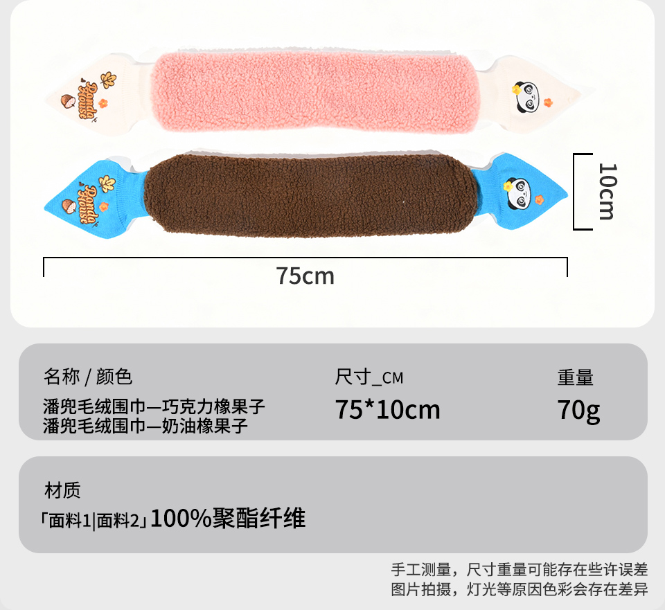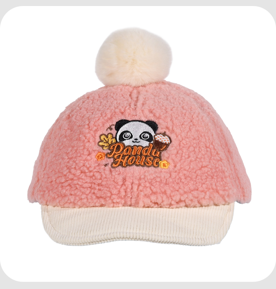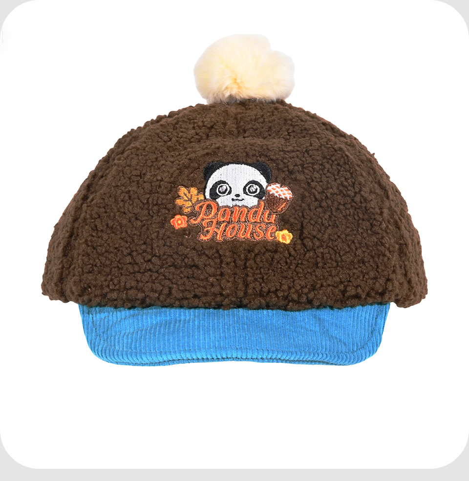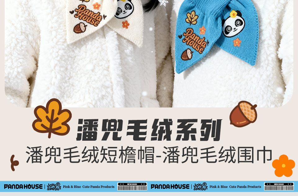 熊猫屋PANDAHOUS 潘兜毛绒短檐帽-粉色/咖色 潘兜毛绒围巾—巧克力橡果子/奶油橡果子