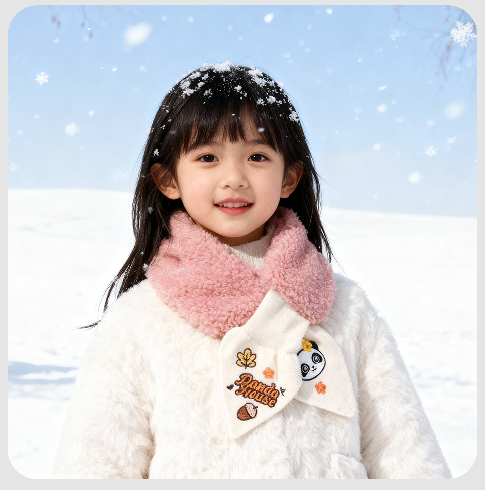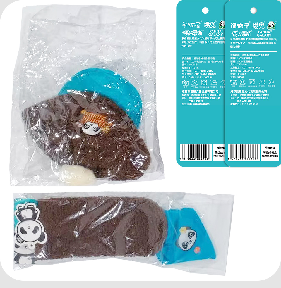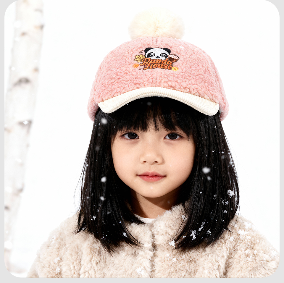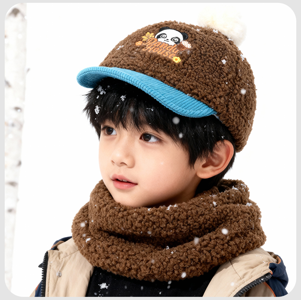 熊猫屋PANDAHOUS 潘兜毛绒短檐帽-粉色/咖色 潘兜毛绒围巾—巧克力橡果子/奶油橡果子