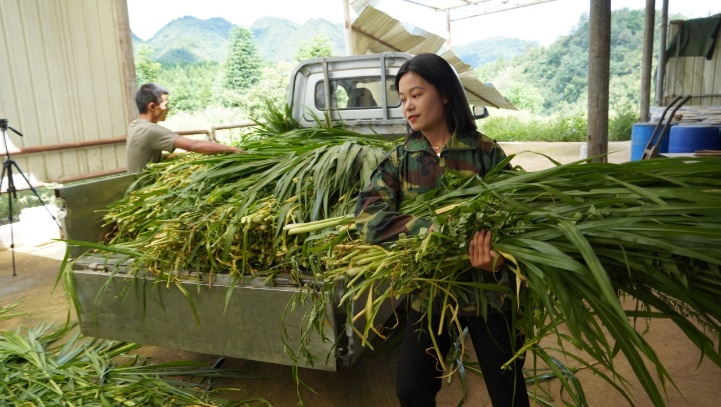 年的秦大哥,在检查用巨菌草、苎麻叶、夜