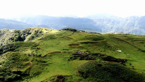这是航拍的猪猪们在山顶天然牧场里撒欢、
