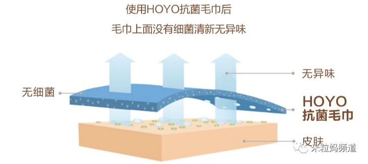 HOYO的毛巾,采用银离子抗菌技术,也就是把微细纤维涂上了纯银,再将这些银色纤维和有机棉缠绕在一起。