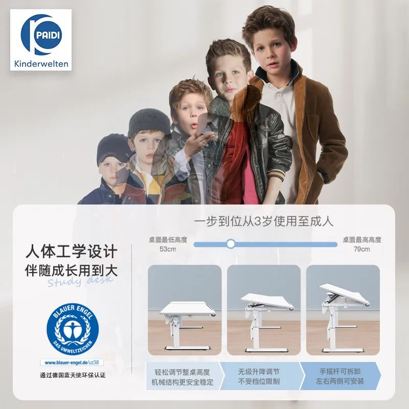 德国原装进口Paidi儿童学习桌椅 伴读凳 通过欧洲最严苛的认证 可调节倾斜角度 高度可升降 |百里居