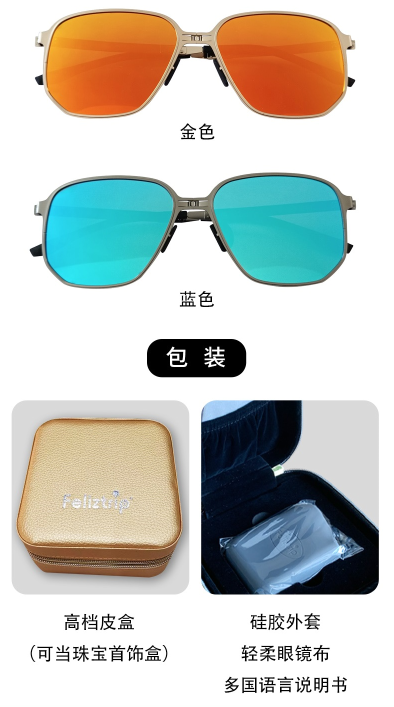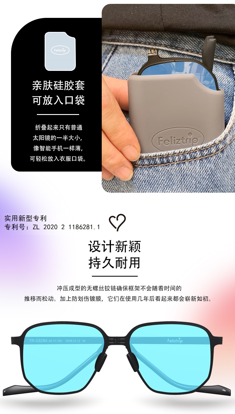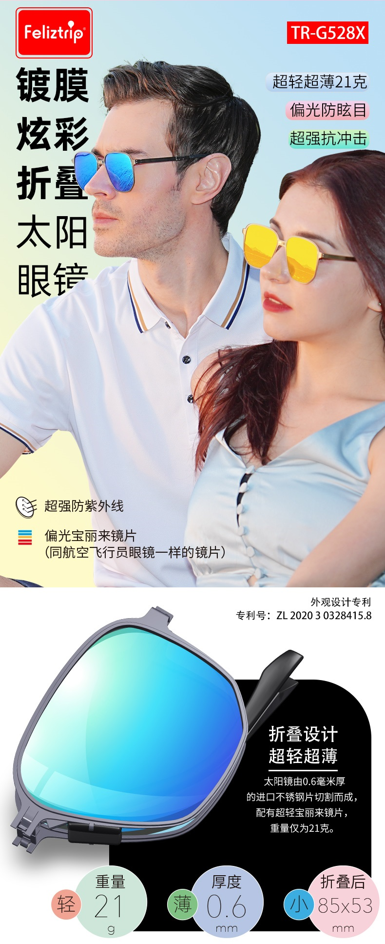Feliztrip斐利斯 折叠镀膜太阳眼镜墨镜防紫外线防蓝光超轻无螺丝铰链镜框偏光镜片 TR-G528X