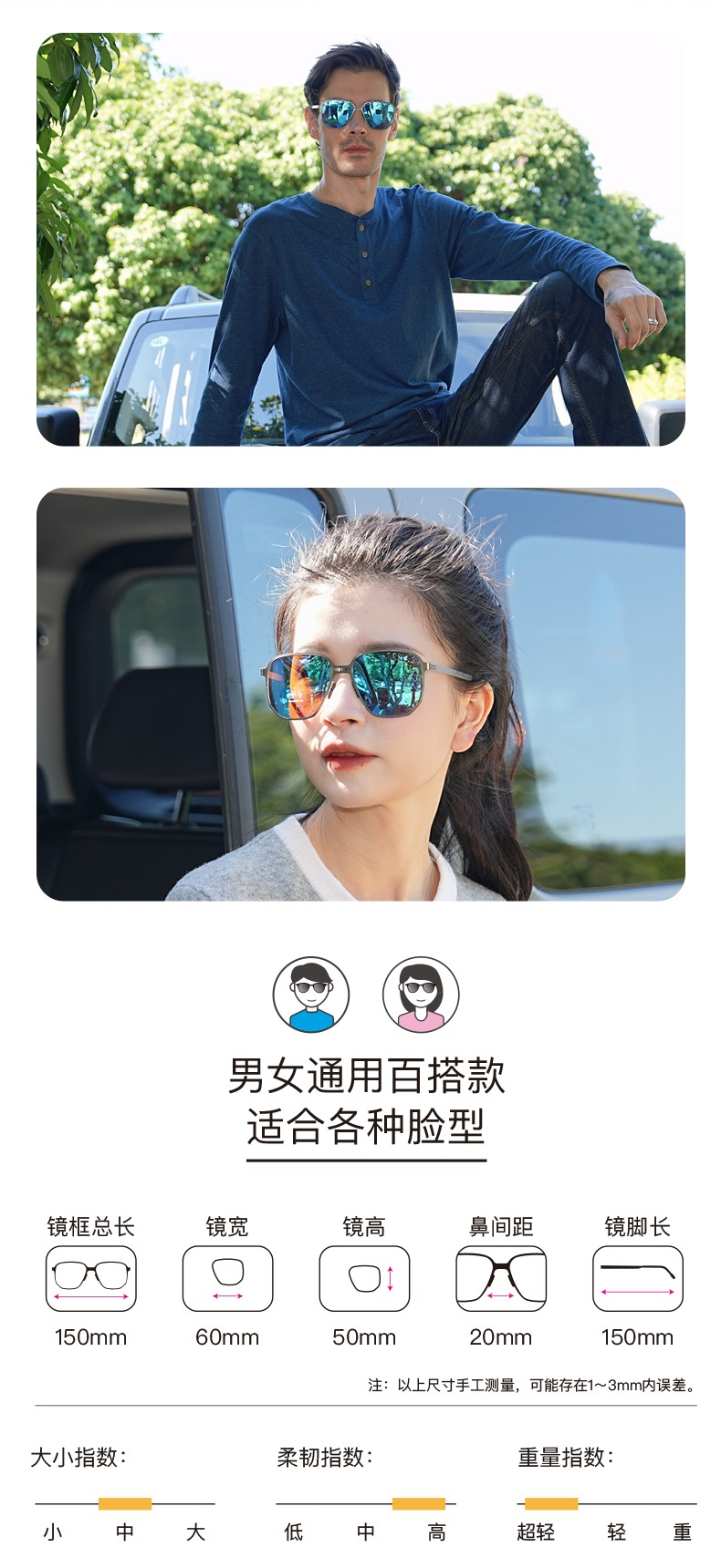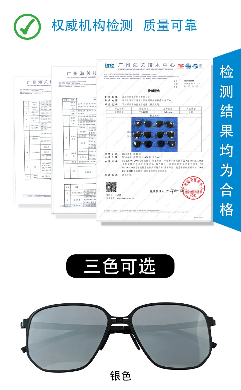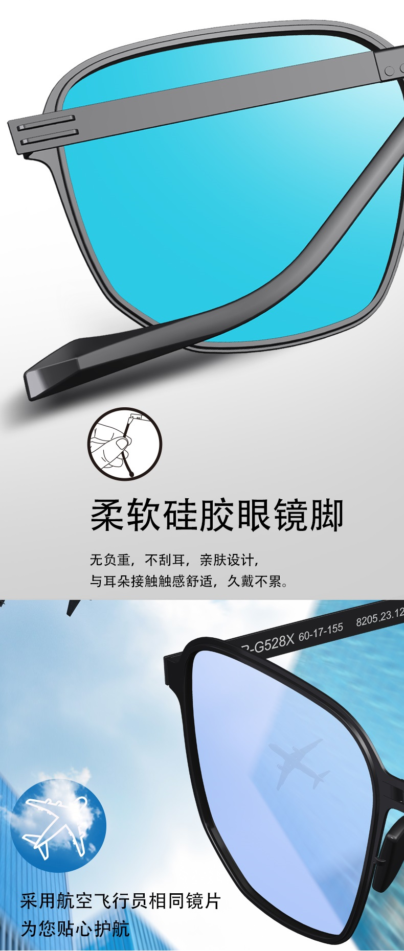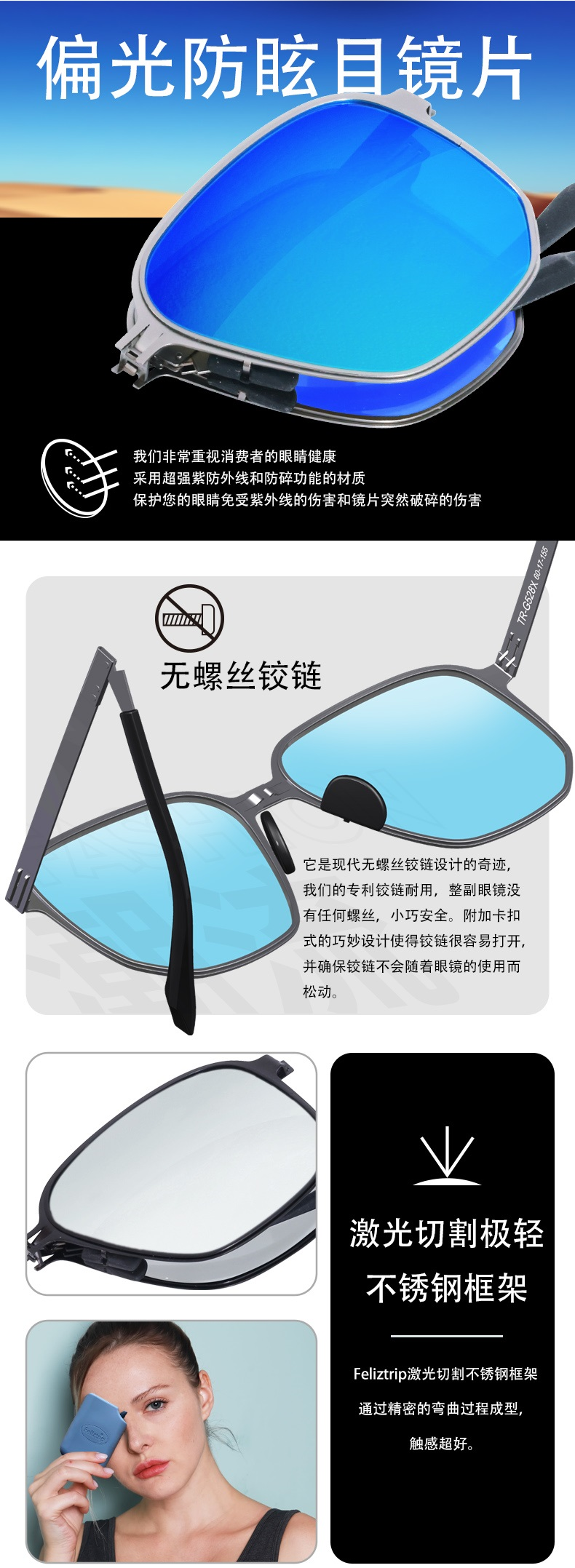 Feliztrip斐利斯 折叠镀膜太阳眼镜墨镜防紫外线防蓝光超轻无螺丝铰链镜框偏光镜片 TR-G528X