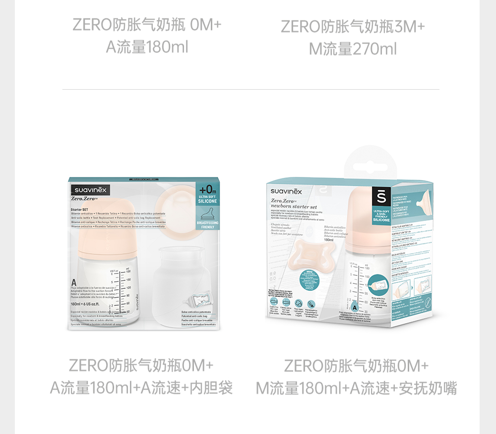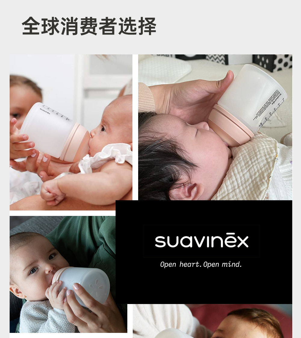 Suavinex苏维妮新生婴幼儿防胀气奶瓶0到6个月防呛硅胶仿母乳实感304590 304592