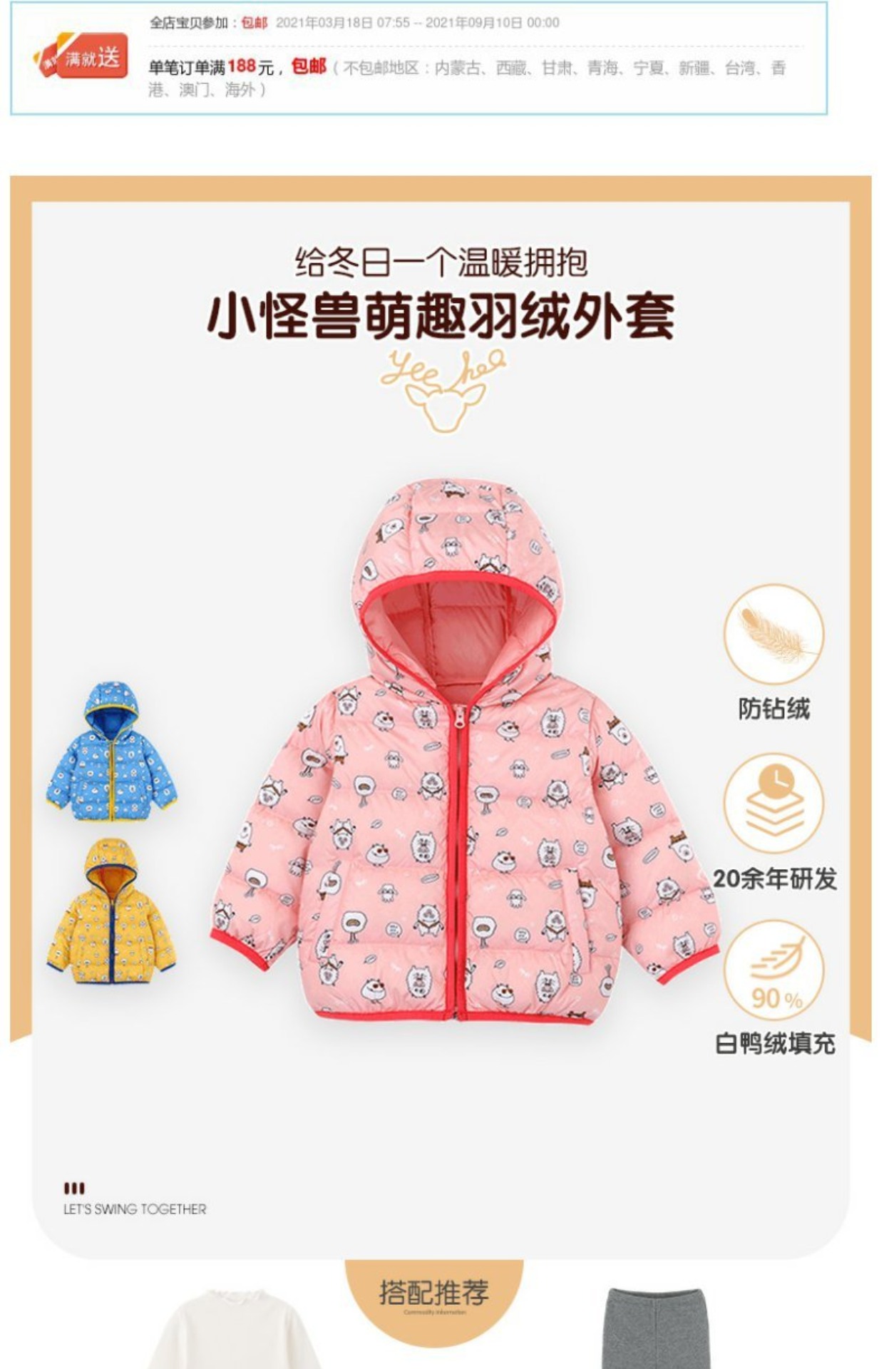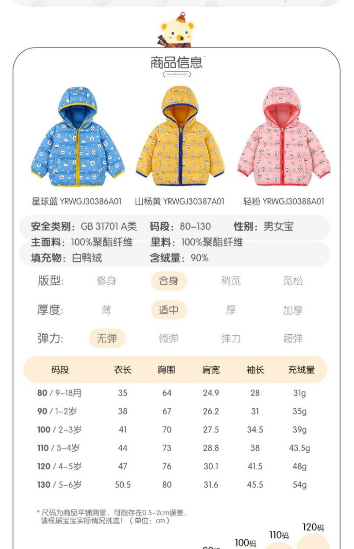 英氏童装儿童羽绒服外穿连帽保暖外套秋冬轻薄YRWGJ30386A YRWGJ30387A