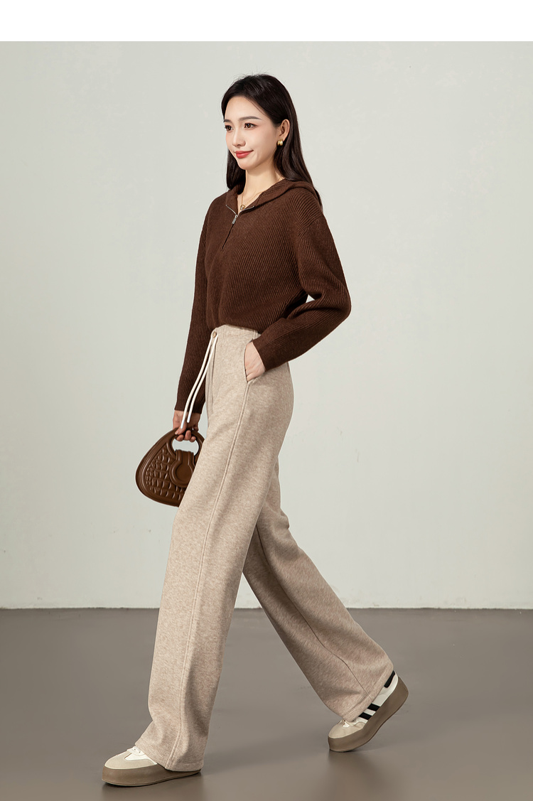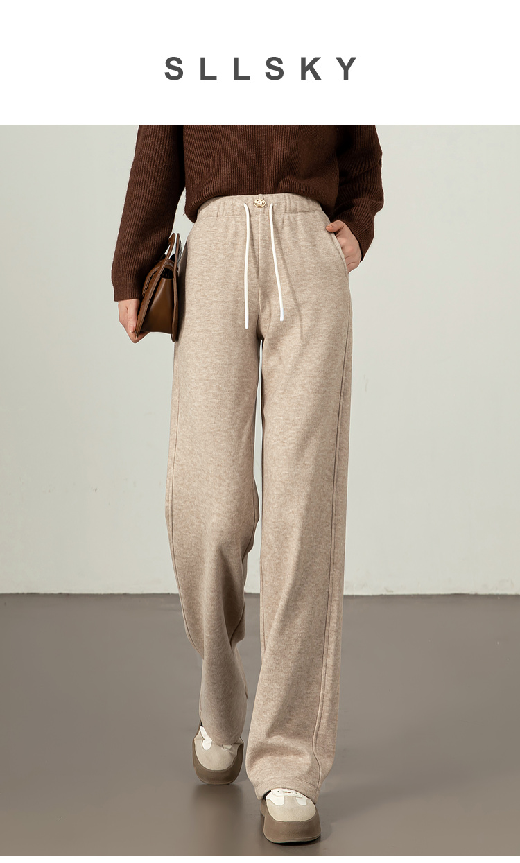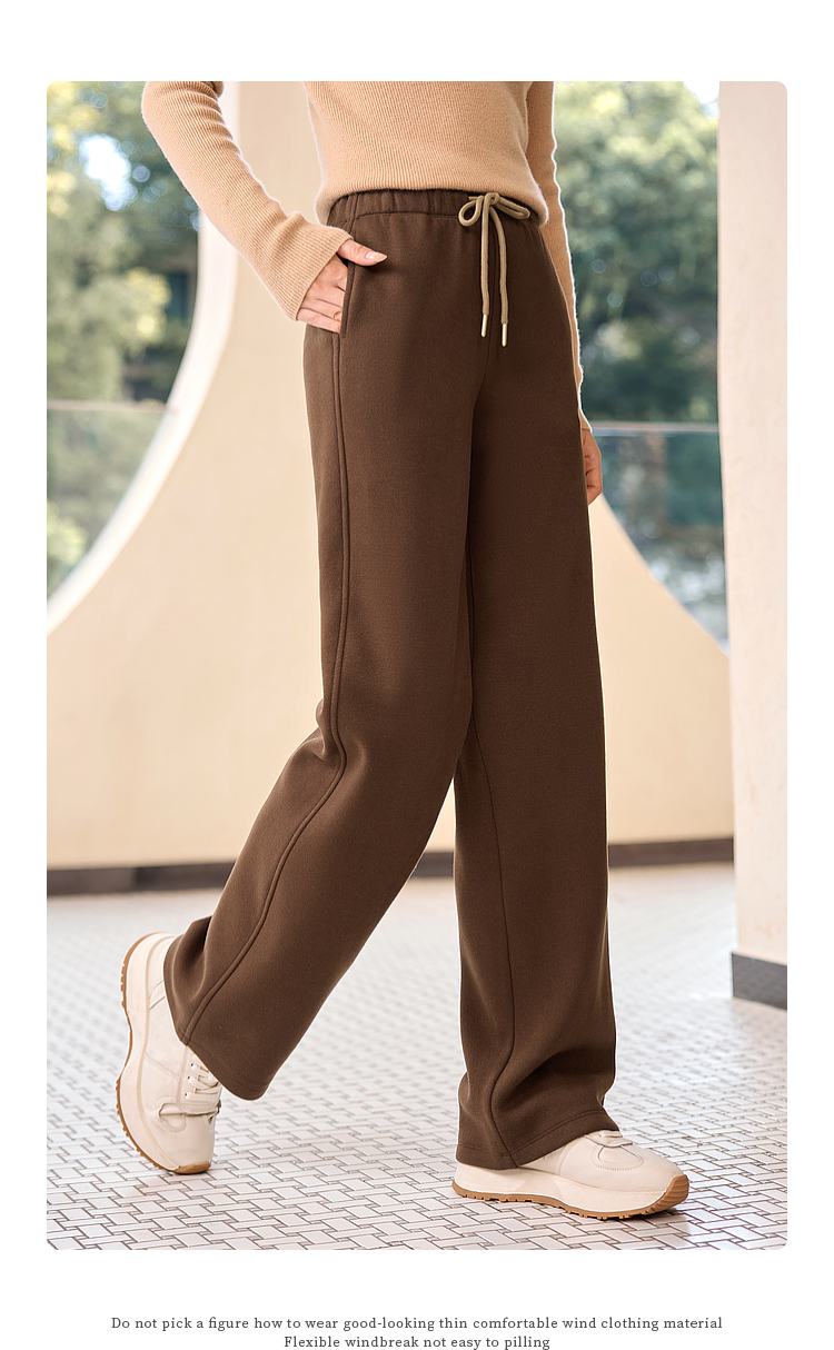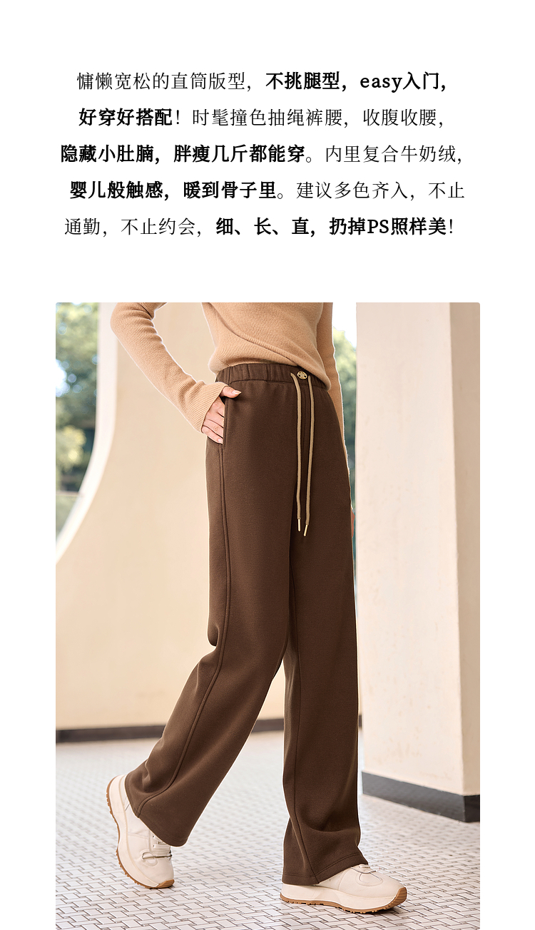 【年终特卖】熙世界窄版阔腿裤冬季加绒裤2025新款垂感面膜裤加厚休闲直筒裤