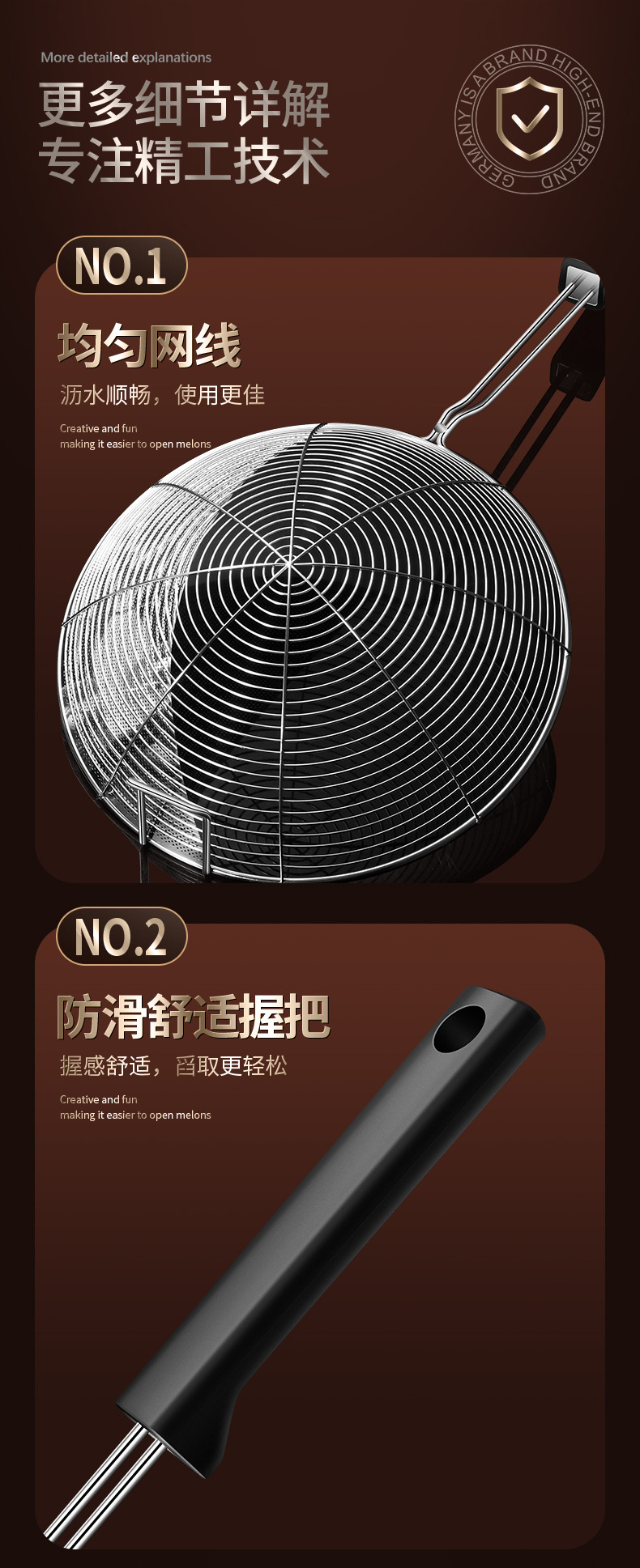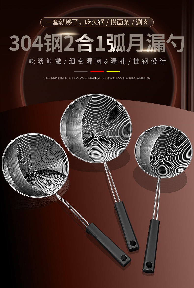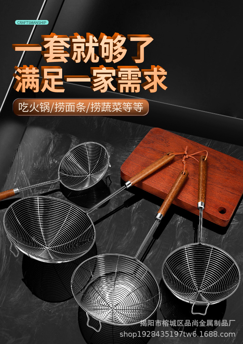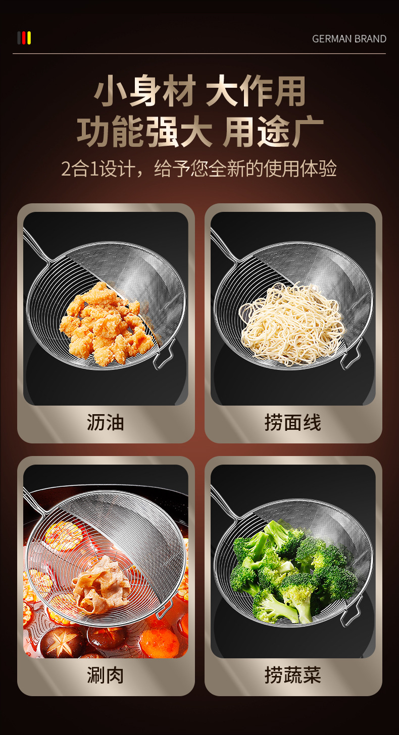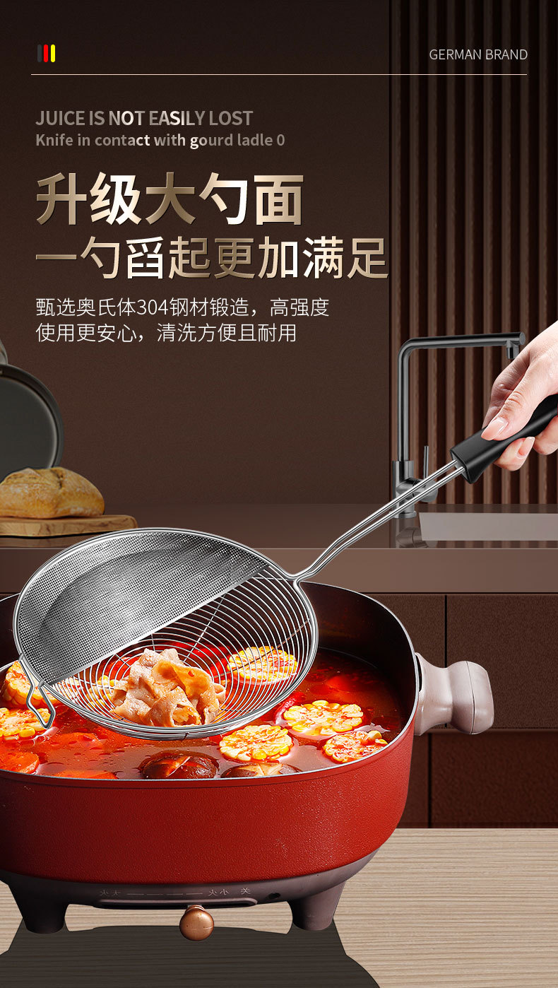 【跨境出口德国316不锈钢大漏勺】316不锈钢线漏厨房加大沥水勺多用途带滤网笊篱加长防烫柄大漏勺