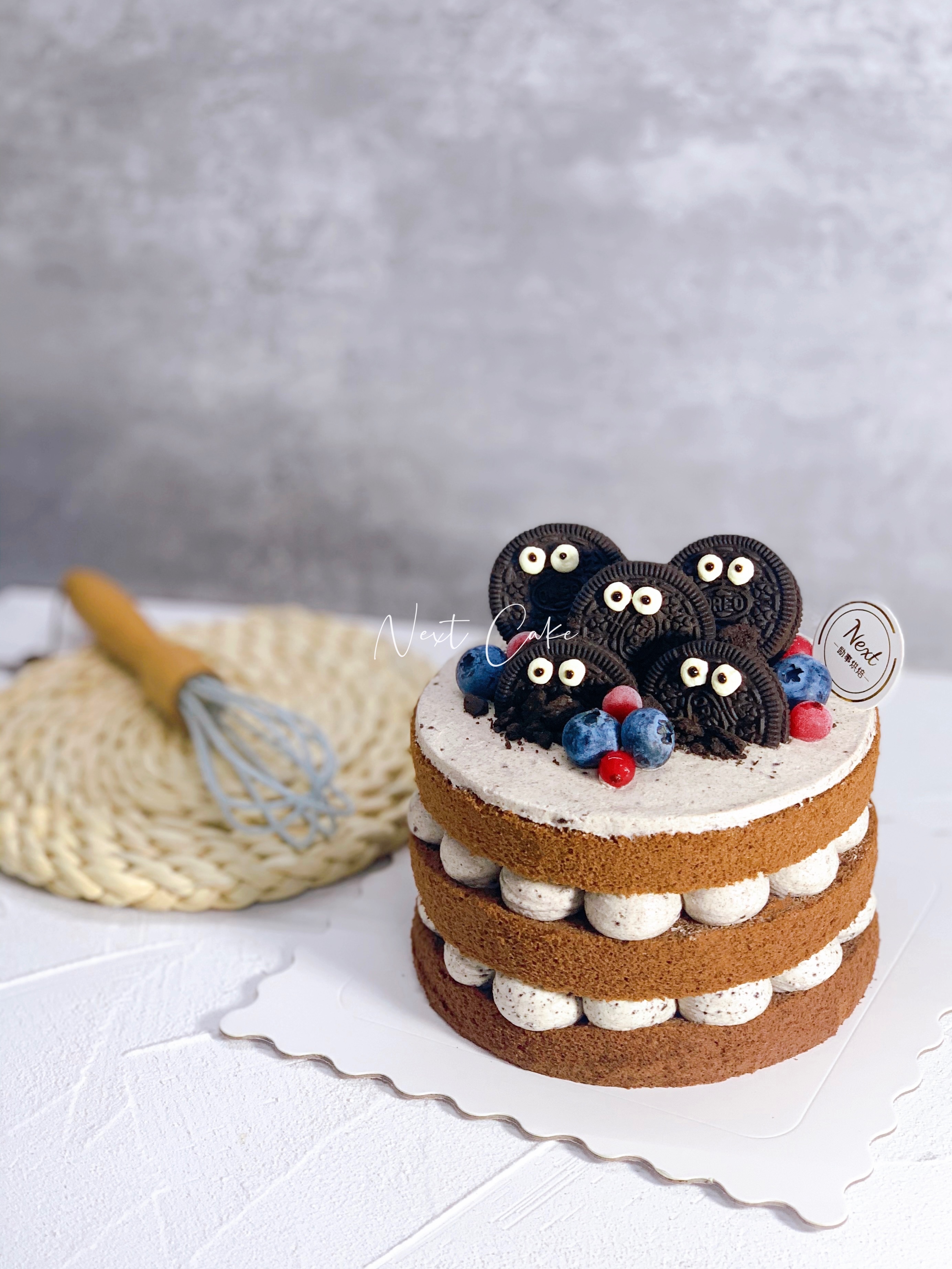 一直有顾客咨询我们有没有咸奶油蛋糕,趁着万圣节,我们推出这款鬼马奥利奥咸奶油裸蛋糕。在奥利奥上画了眼睛,顿时变成了一群小鬼灵精,造型鬼马有趣。
