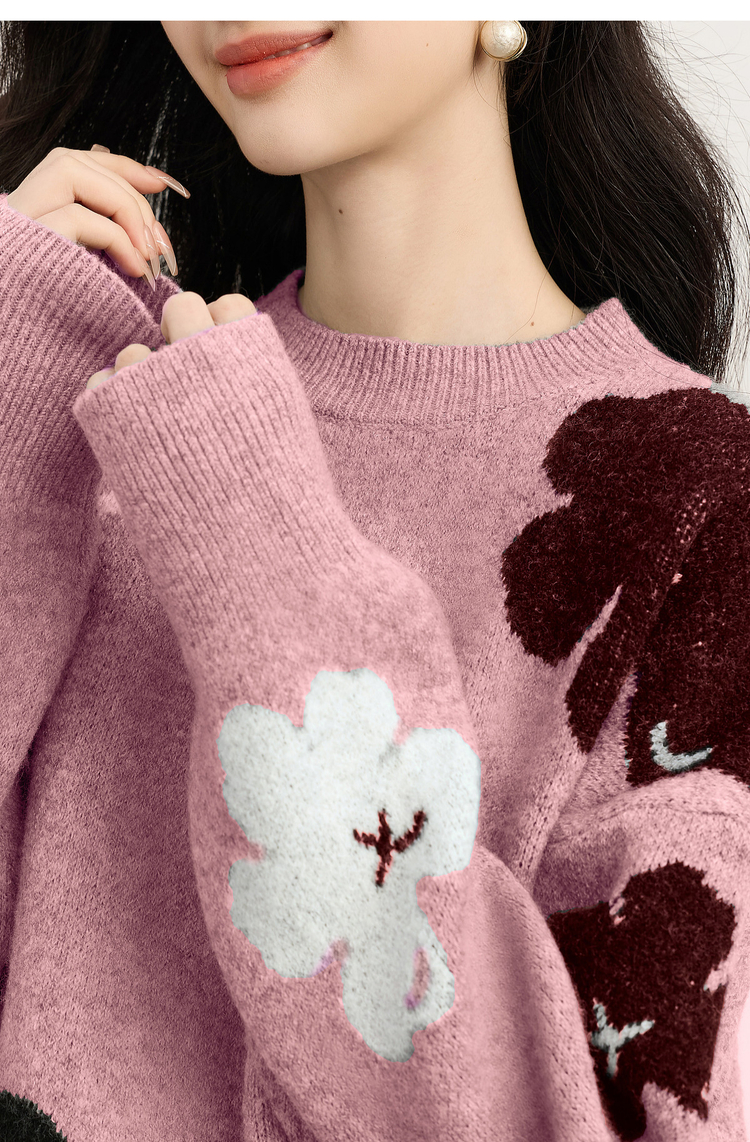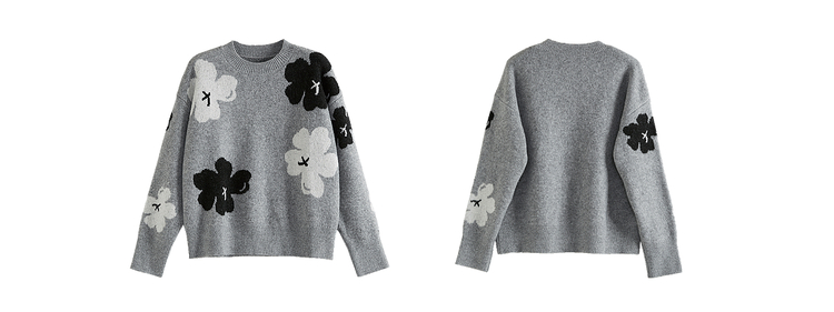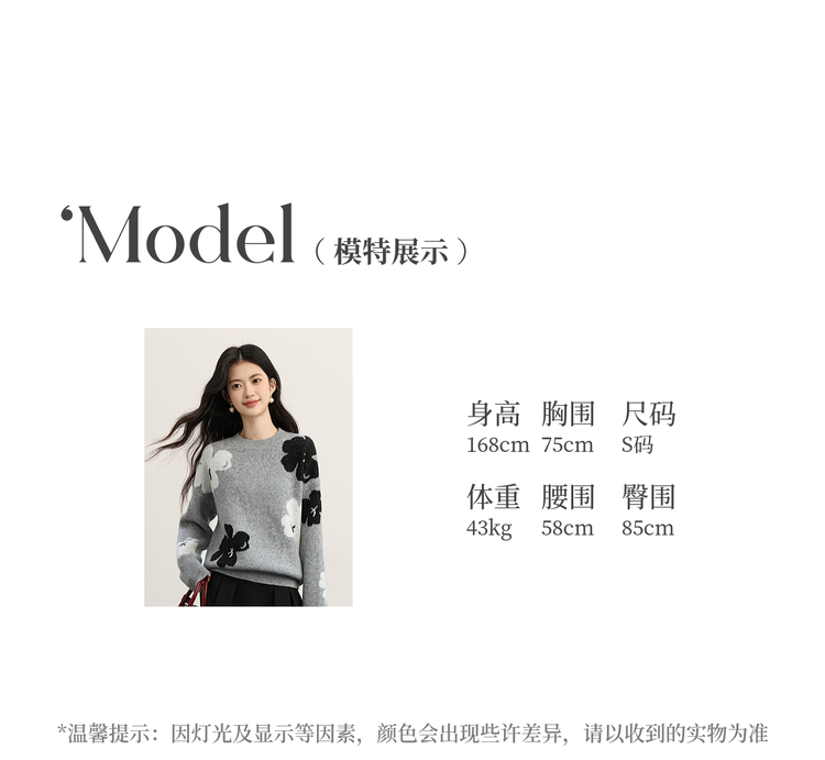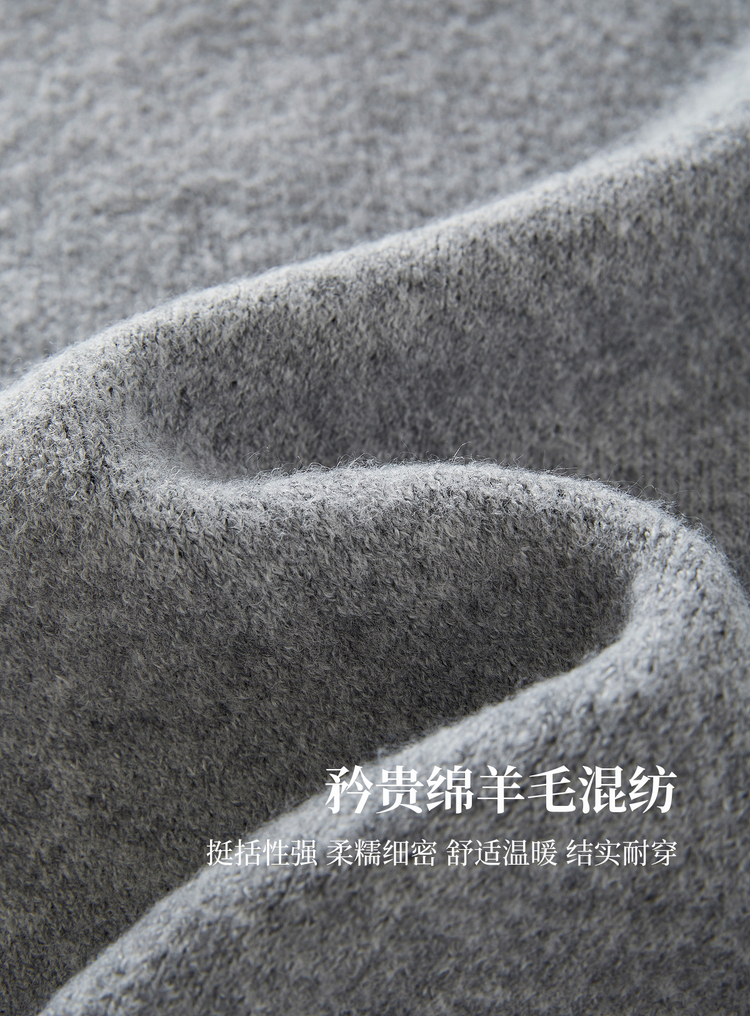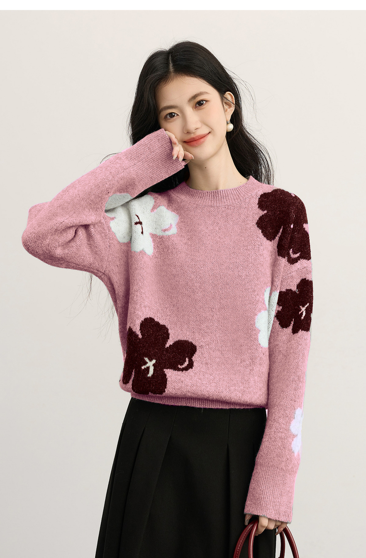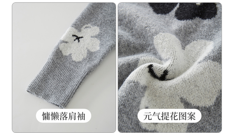 【年终特卖】熙世界含羊毛万花绒毛衣女套头2025冬季新款气质提花灰色厚针织衫