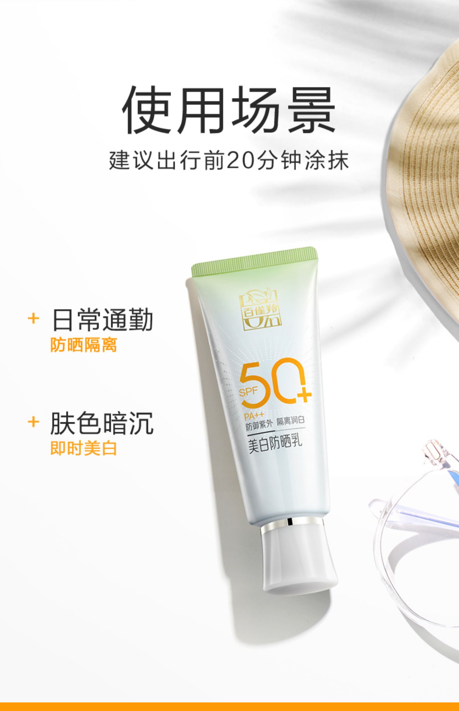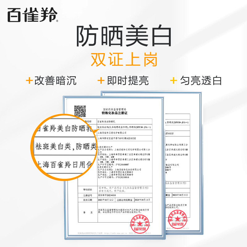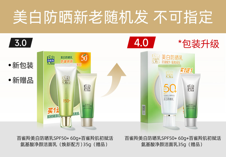 百雀羚水嫩倍现美白防晒乳SPF50PA+++套装(60g+35g)(新升级)