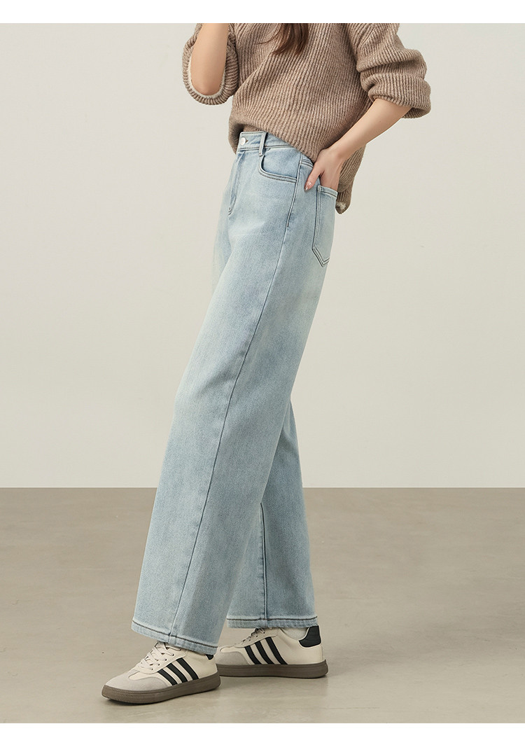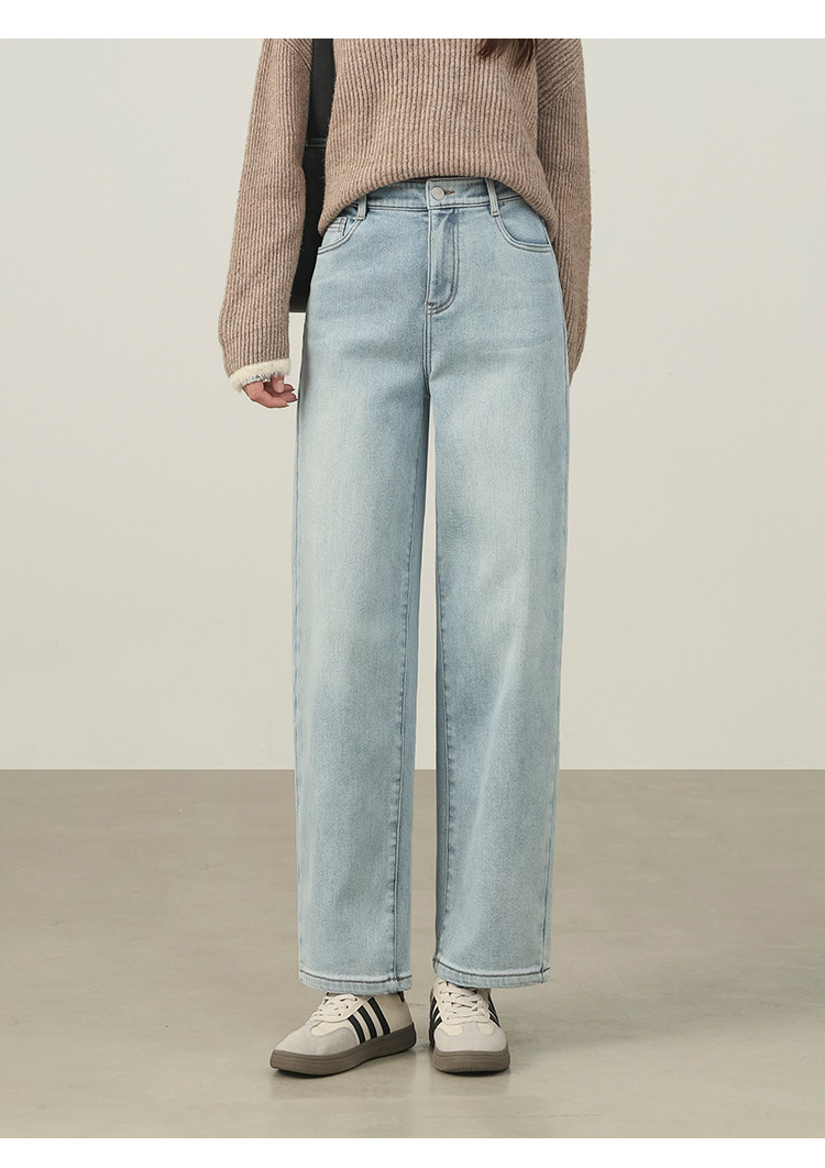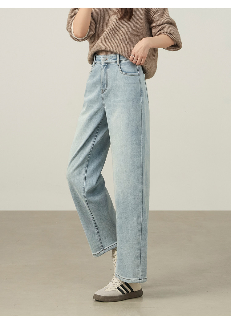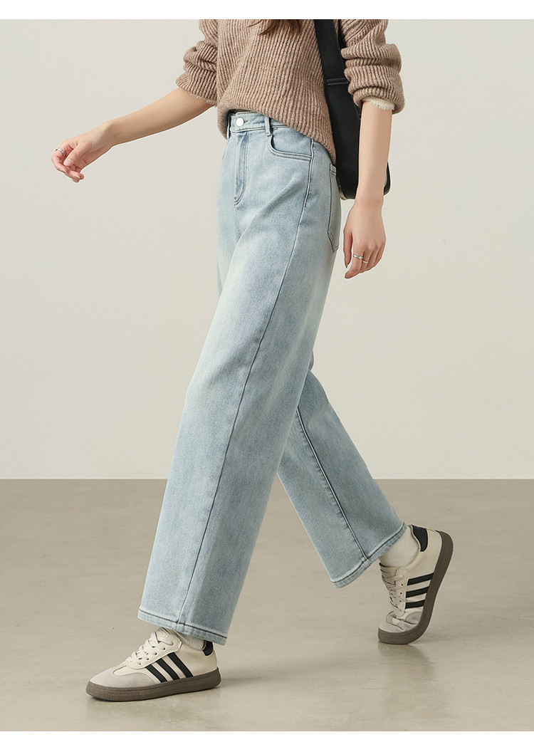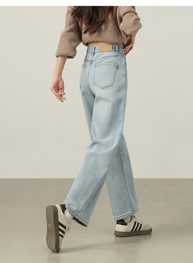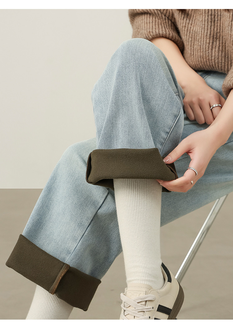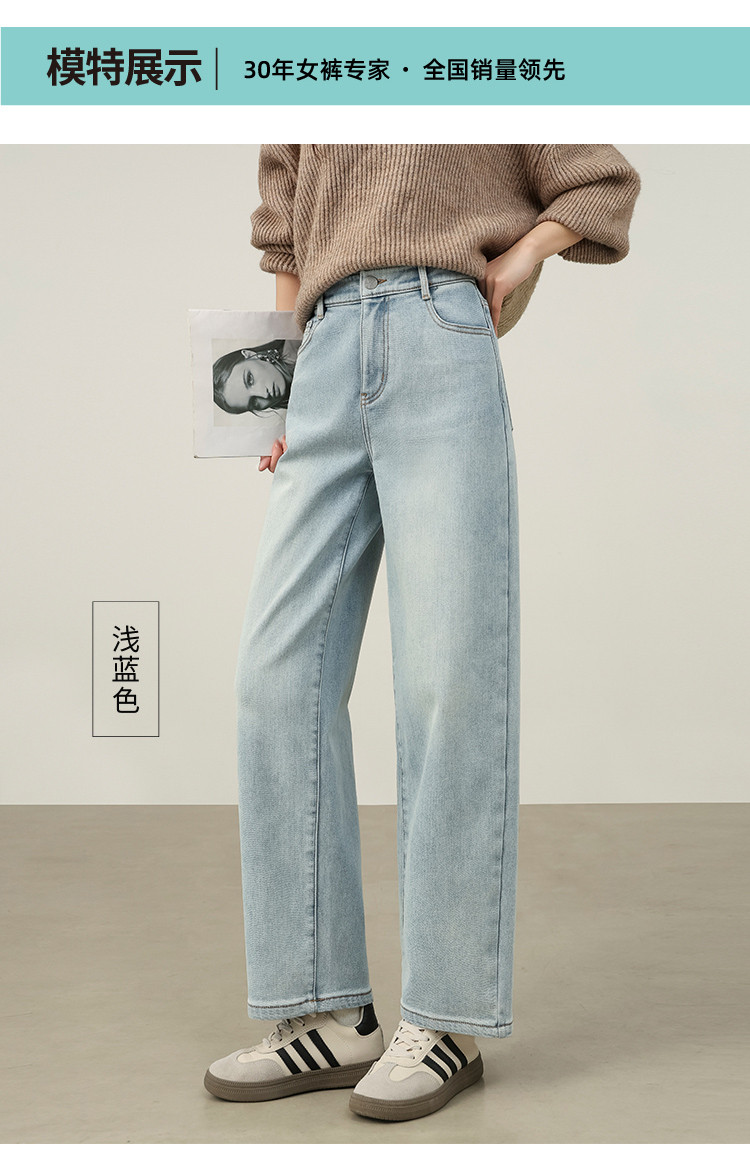 【浅蓝色-薄绒-哈伦裤】逸阳初春浅色加厚植绒显瘦九分裤小个子牛仔裤7227