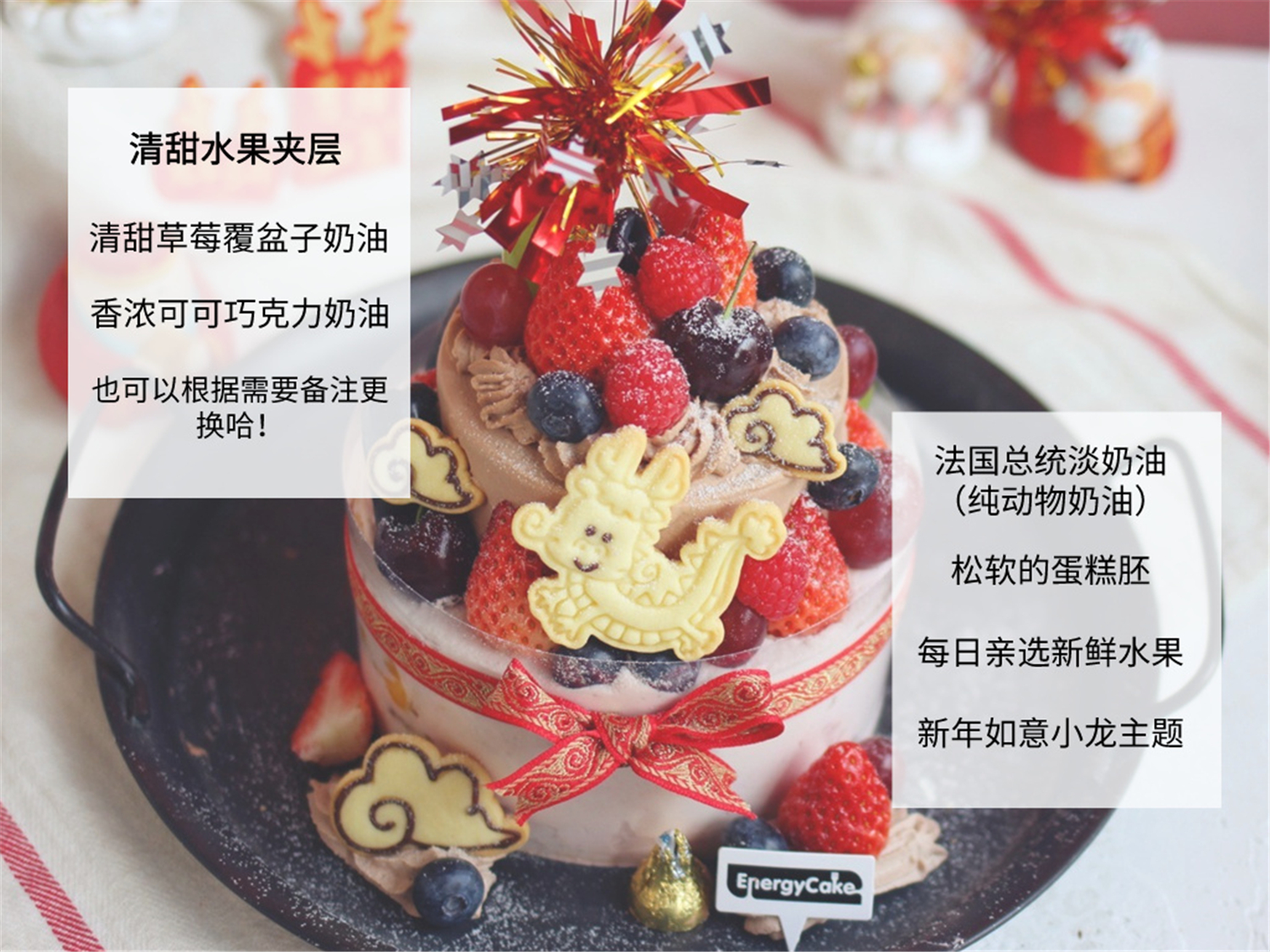 ~喜欢可爱的小蛋糕,选了非常可爱且萌萌的小龙,还有我特别选择的喜庆的丝带~
