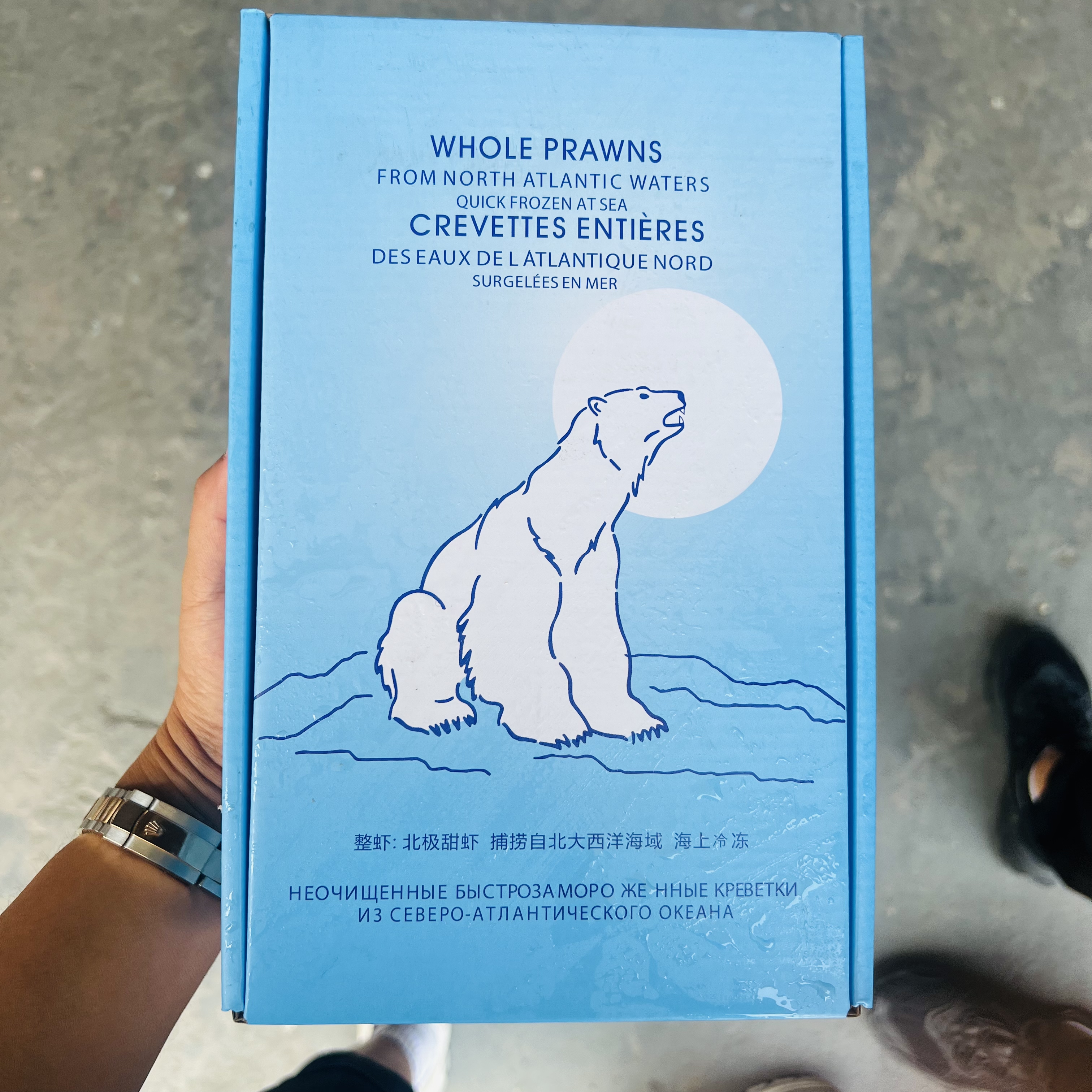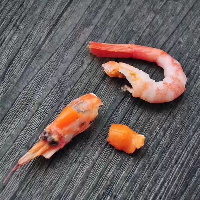 ★北极虾从深海中直接捕捞的,把北极虾从二三百米的深海中直接拖上船,有时候由于起网速度很快,造成北极虾生活的水深在很短时间内发生巨大变化,由于大气压力的快速变化,容易造成虾头(胃部)的破裂,内部的浮游动物也随之扩散。这样一来,本来隐隐约约的黑色胃含物(浮游动物)就显现出来,这就是所谓“黑头”的真正原因,不是坏了。