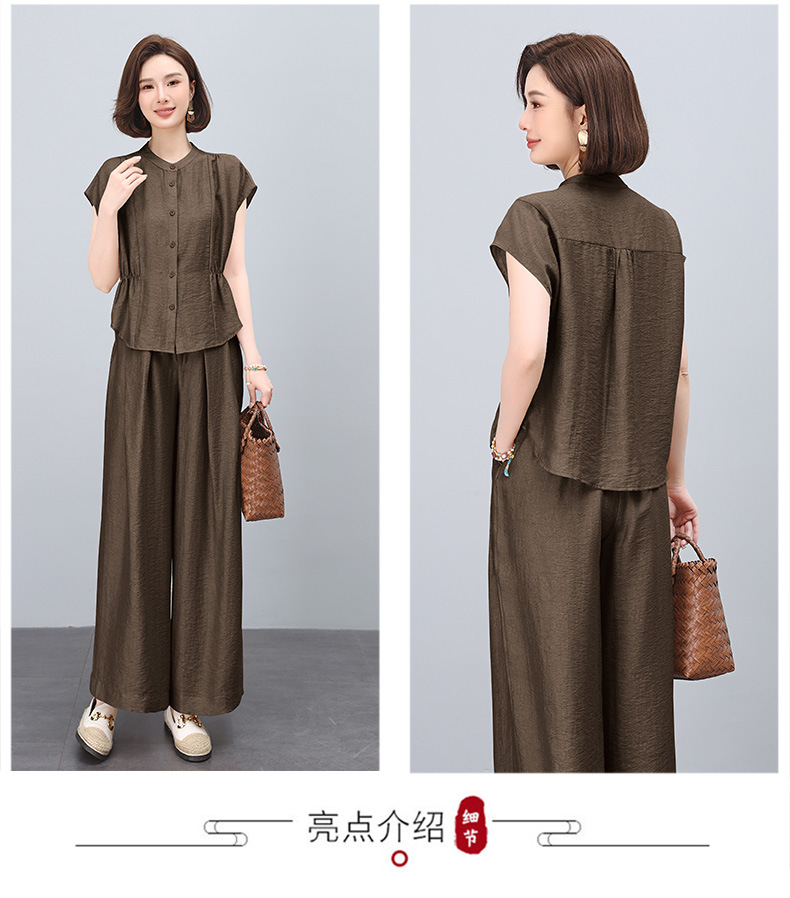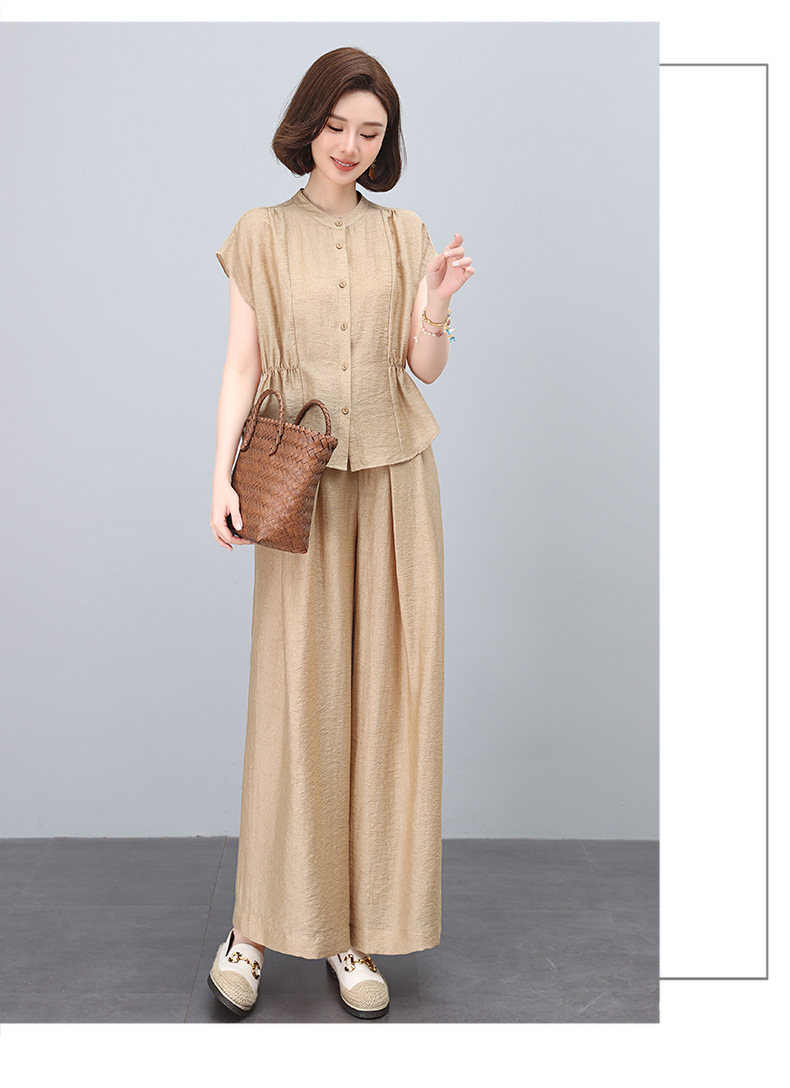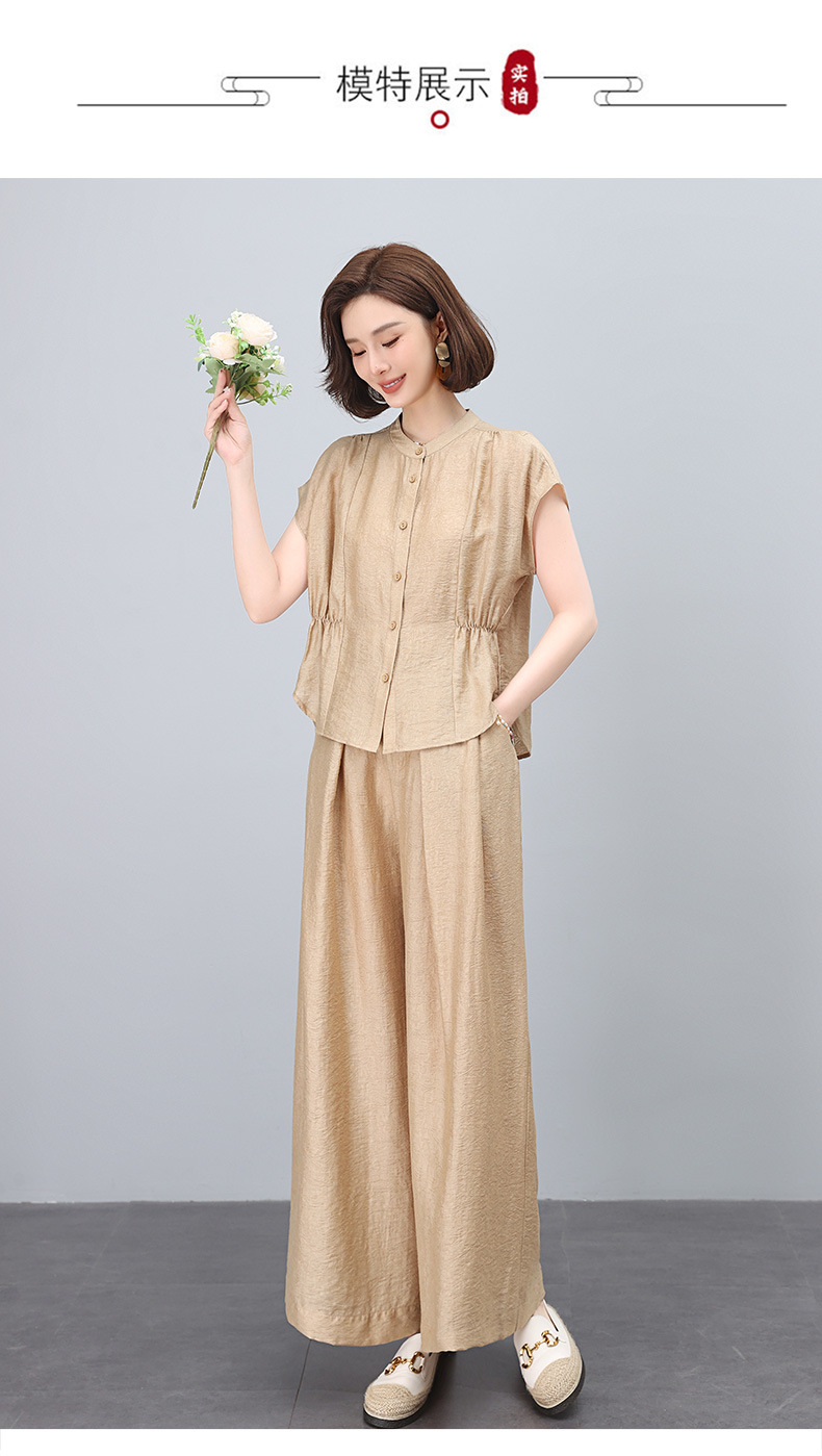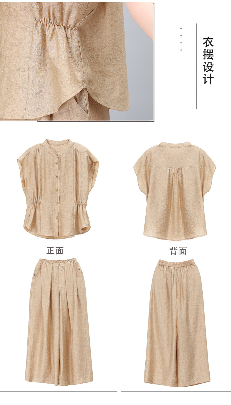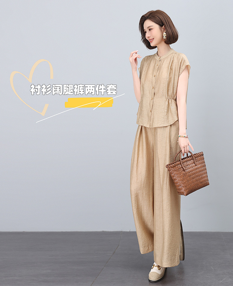 丁摩 时尚休闲天丝麻套装女夏季气质宽松显瘦阔腿裤两件套潮5ZF-6721