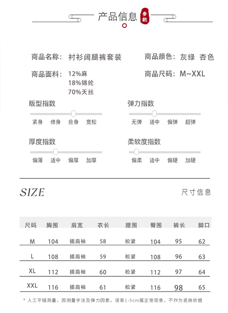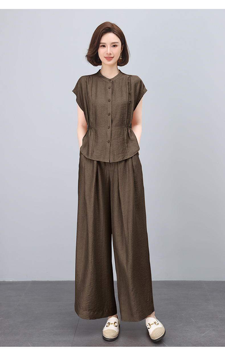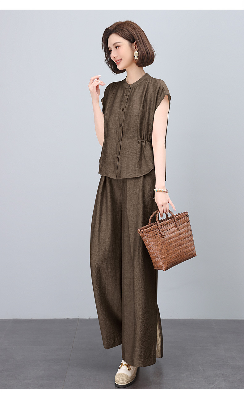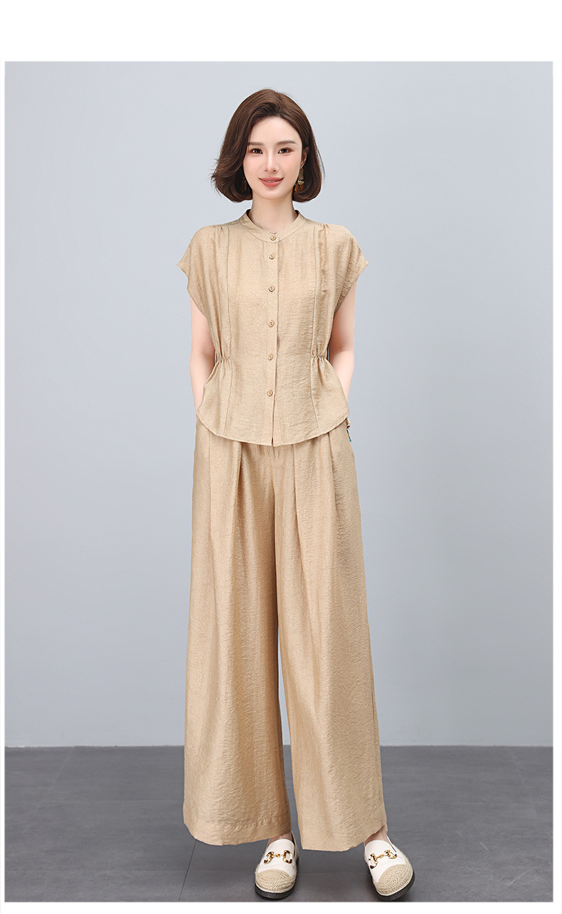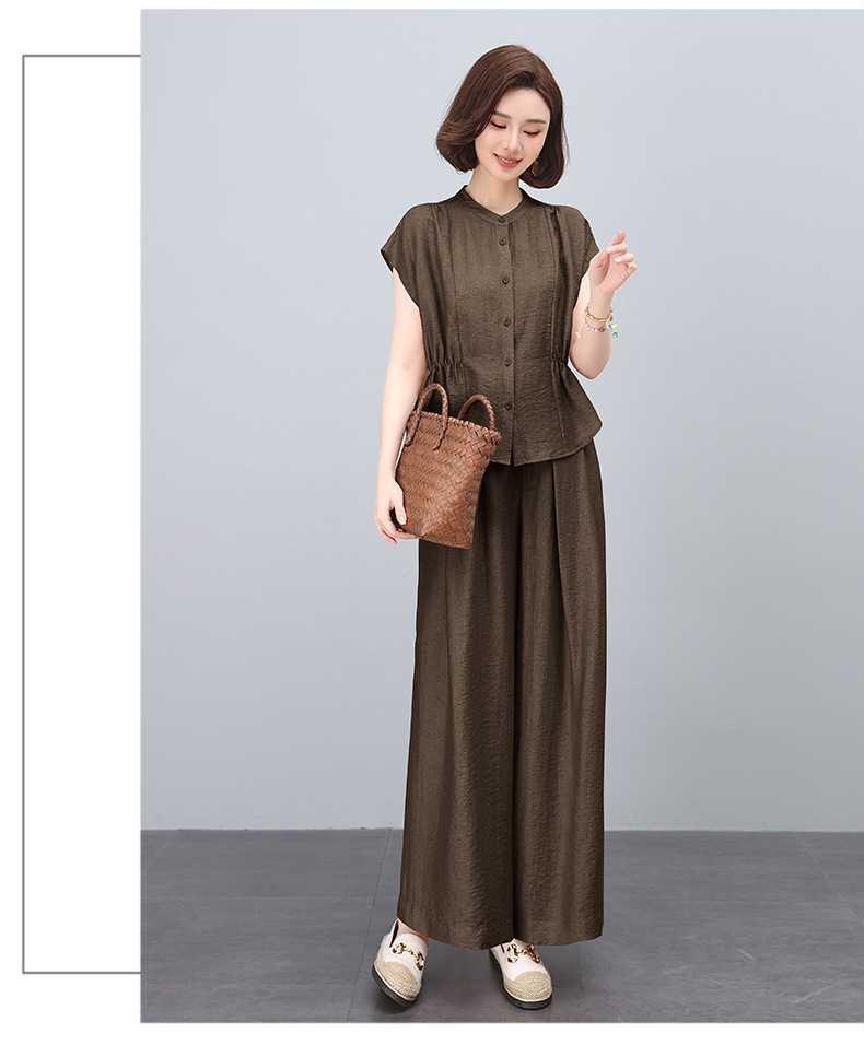 丁摩 时尚休闲天丝麻套装女夏季气质宽松显瘦阔腿裤两件套潮5ZF-6721